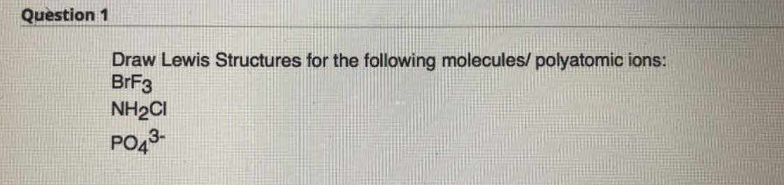 Draw Lewis Structures f0r the follo I ing molecules/ potyatomio ion...