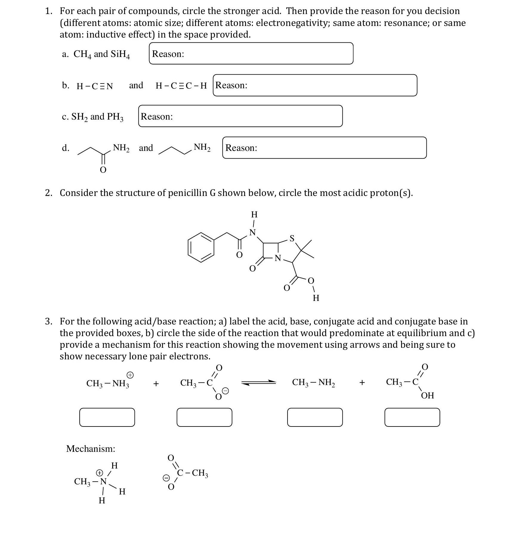 1. For each pair of compounds, circle the stronger acid. Then prov...
