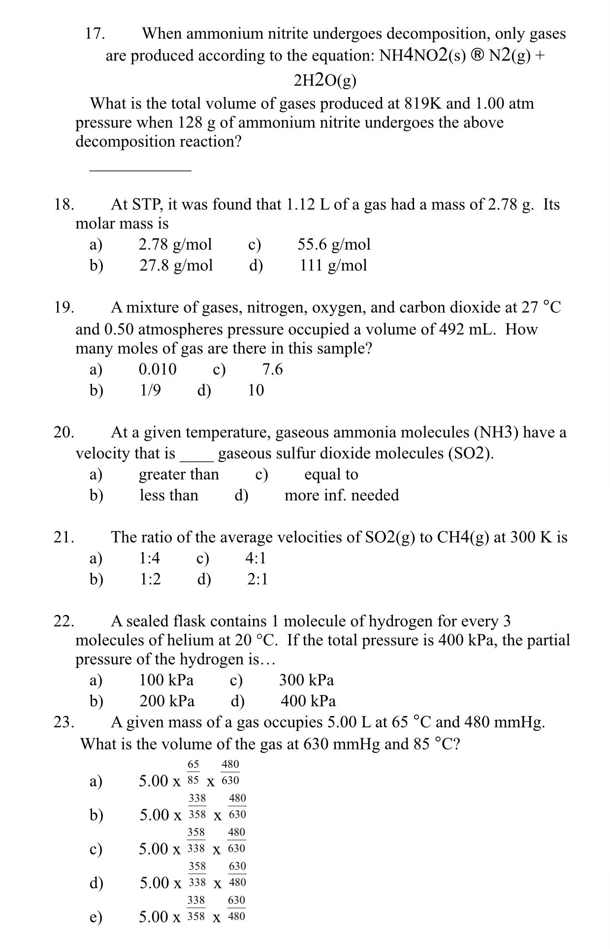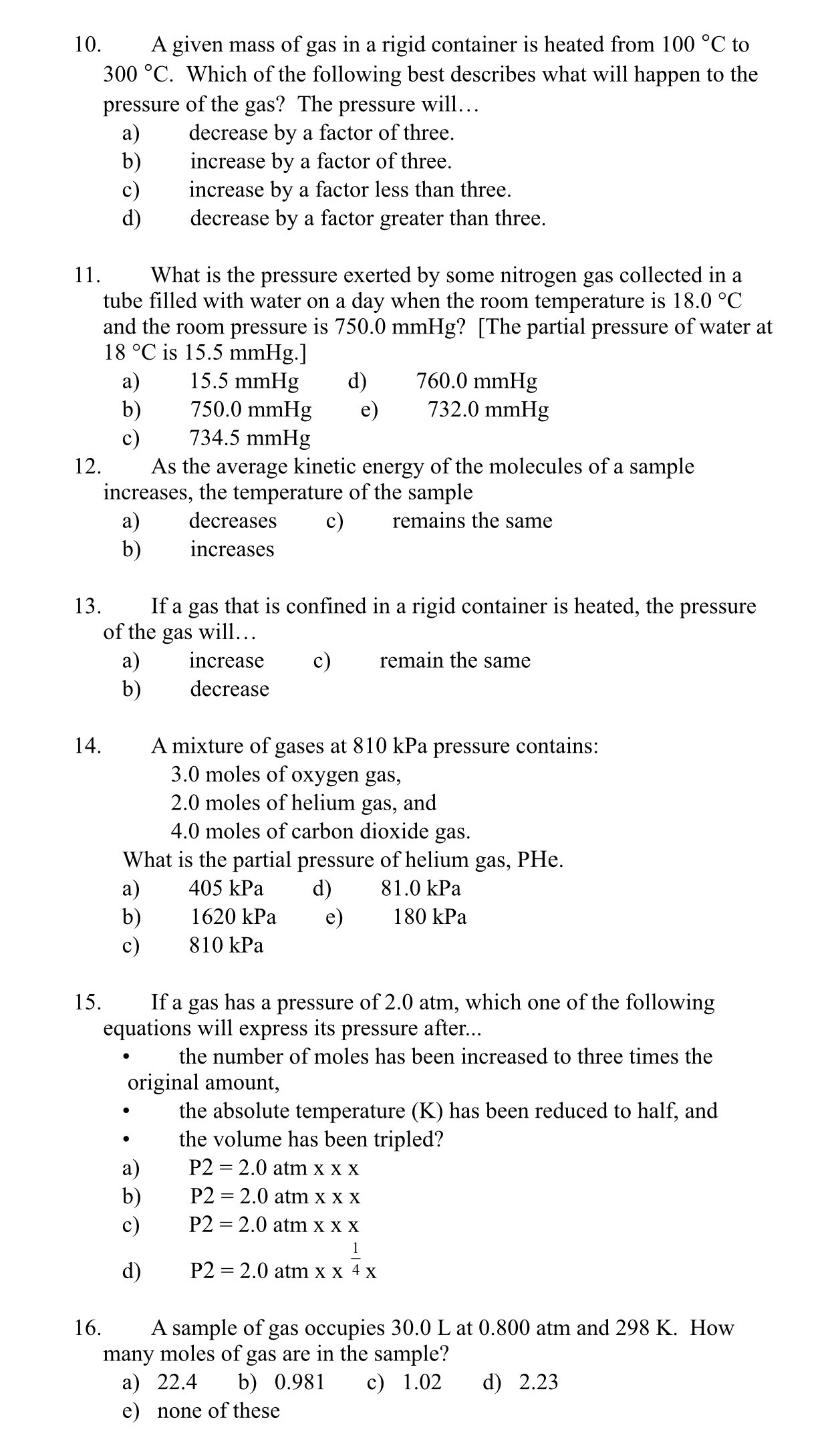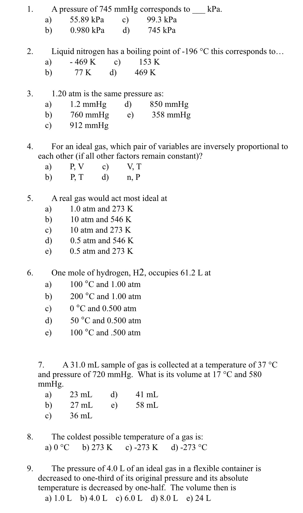 1. A pressure of 745 mmHg corresponds to kPa. a) 55.89 kPa c) ...