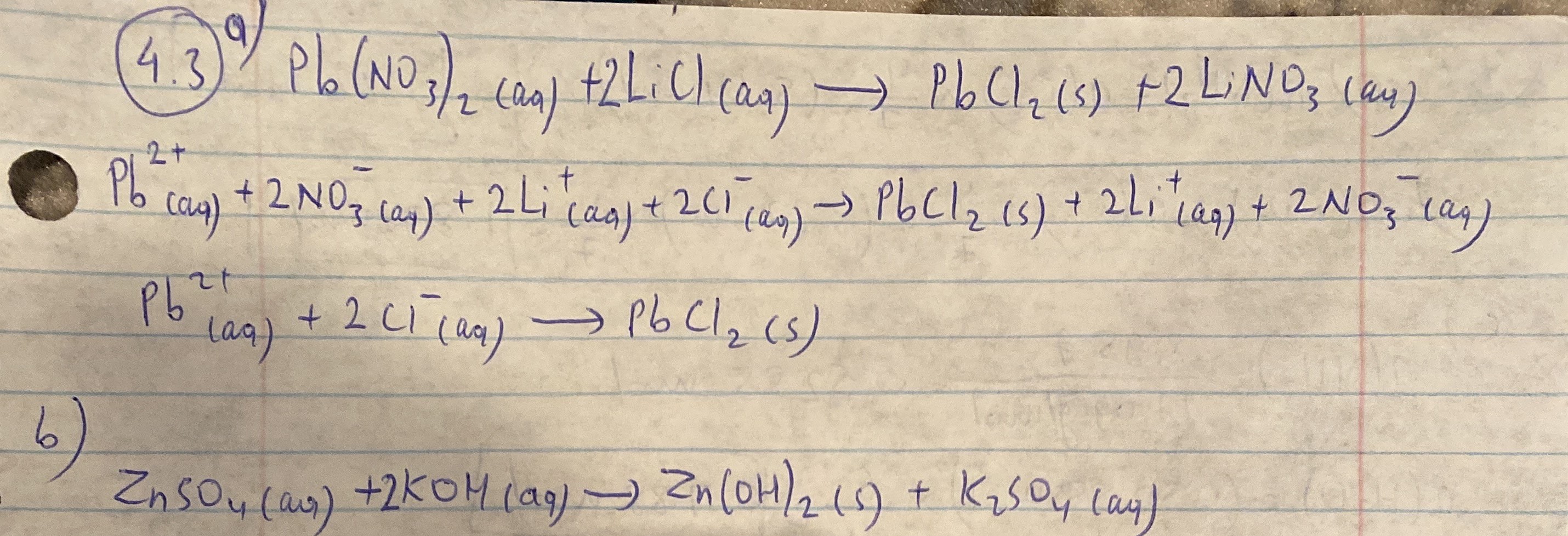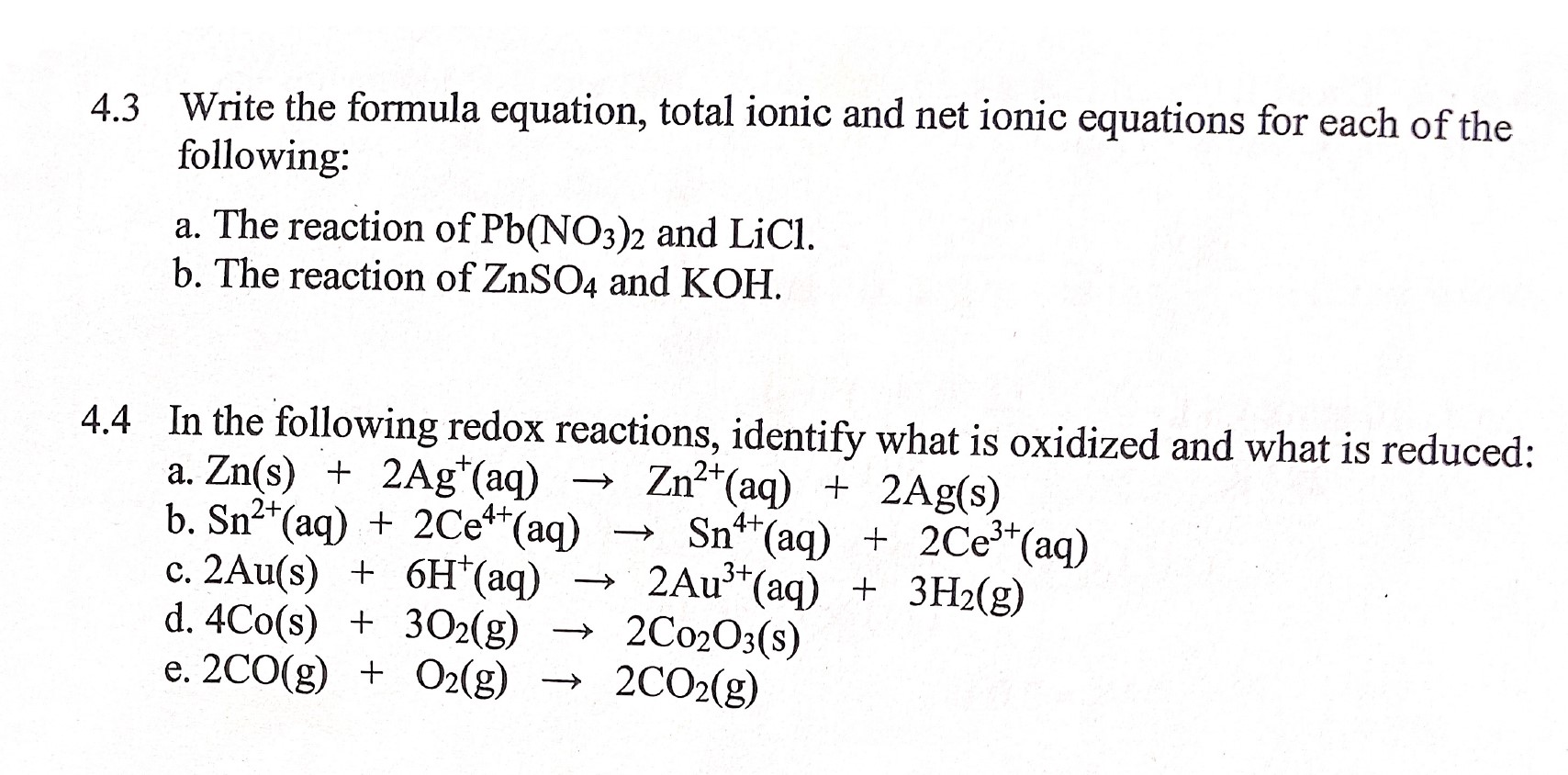 4.3 Write the formula equation, total ionic and net ionic equation...