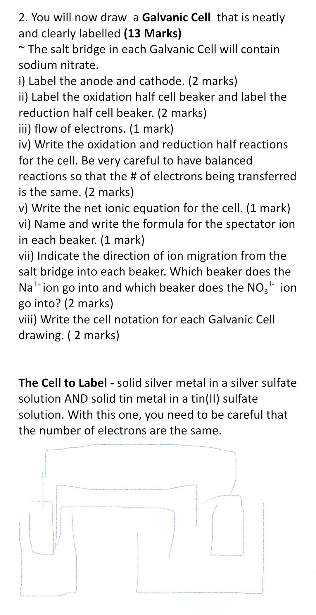 2. You will now draw a Galvanic Cell that is neatly and clearly la...