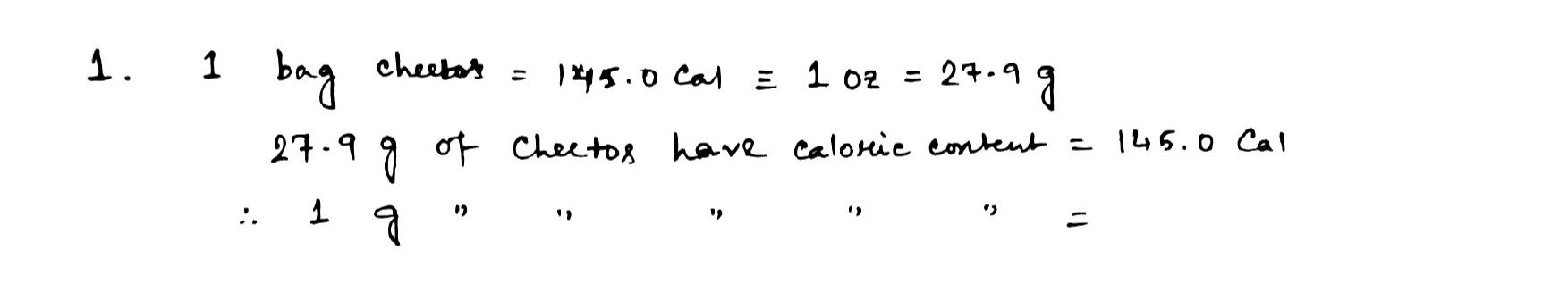 1. Looking at the label of a 1oz (27.9) package of Cheetos. Calorie...
