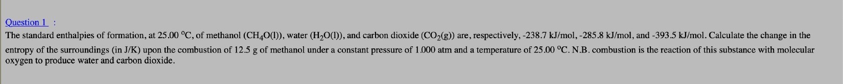 Question 1 : The standard enthalpies of formation, at 25.00 °C, o...