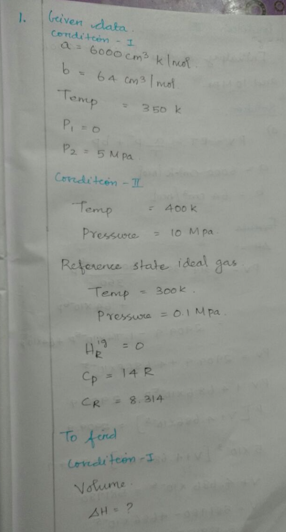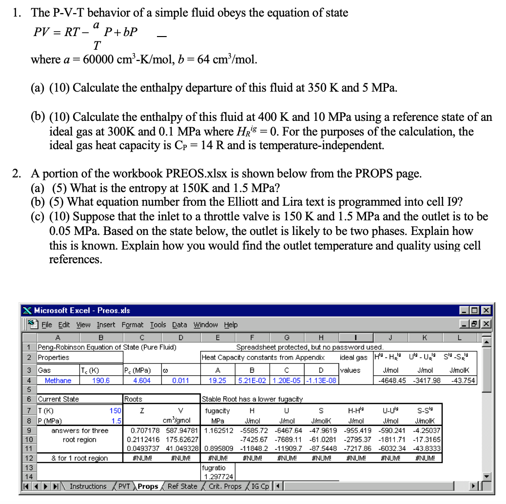 1. The P-V-T behavior of a simple fluid obeys the equation of stat...