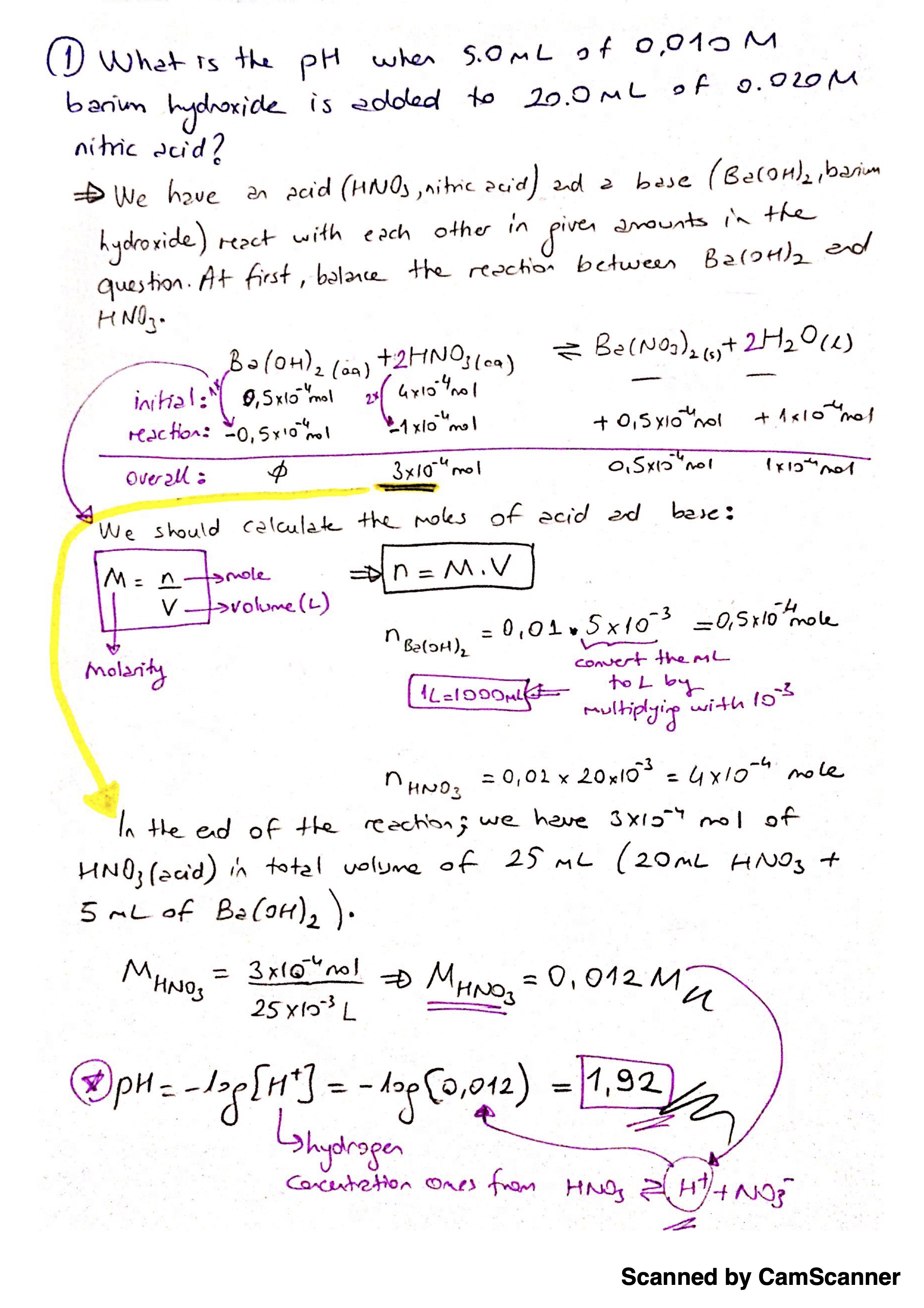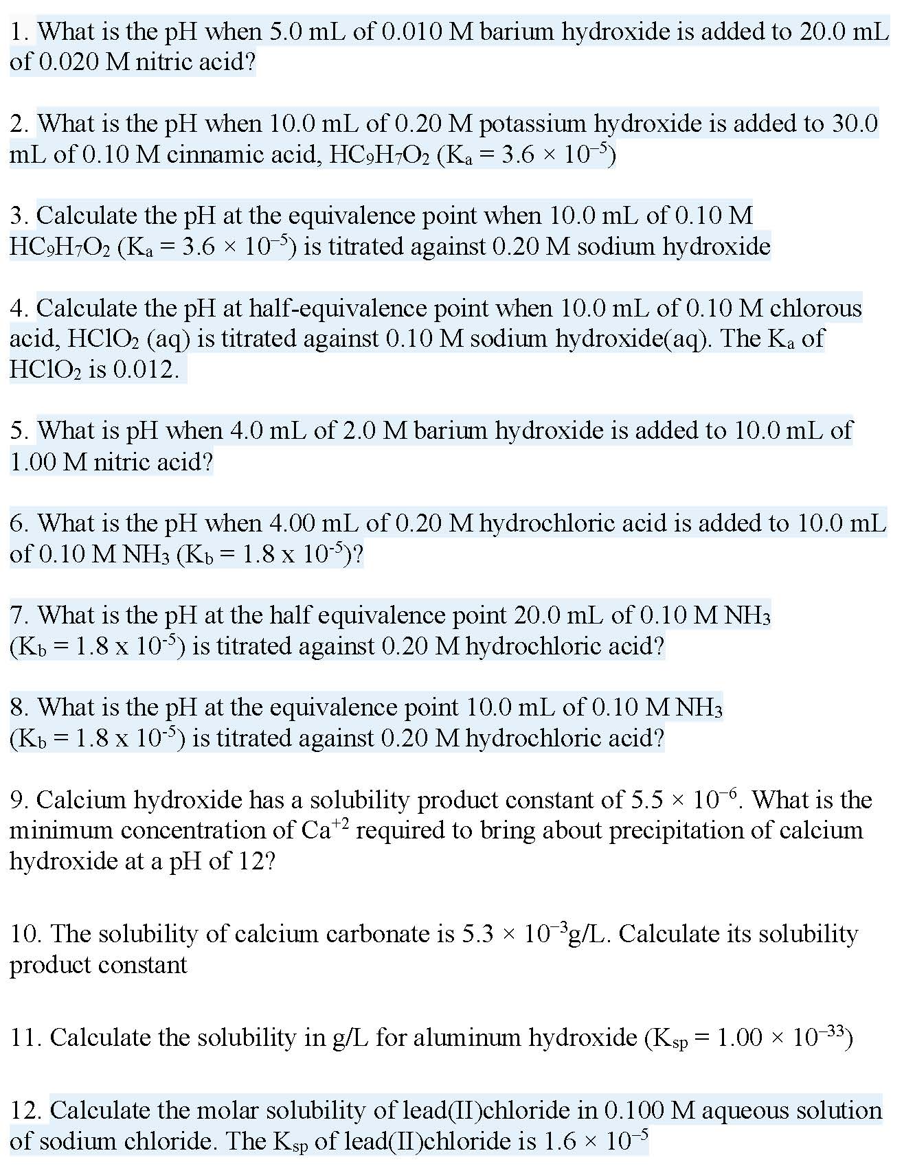 1. What is the pH when 5.0 mL of 0.010 M barium hydroxide is added...