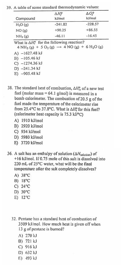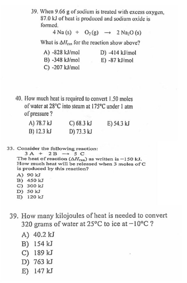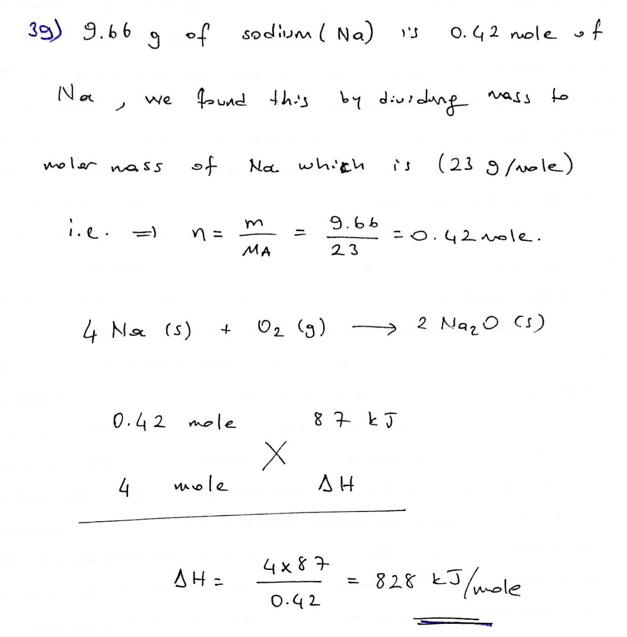 39. When 9.66 g of sodium is treated with excess oxygen, 87.0 kJ o...