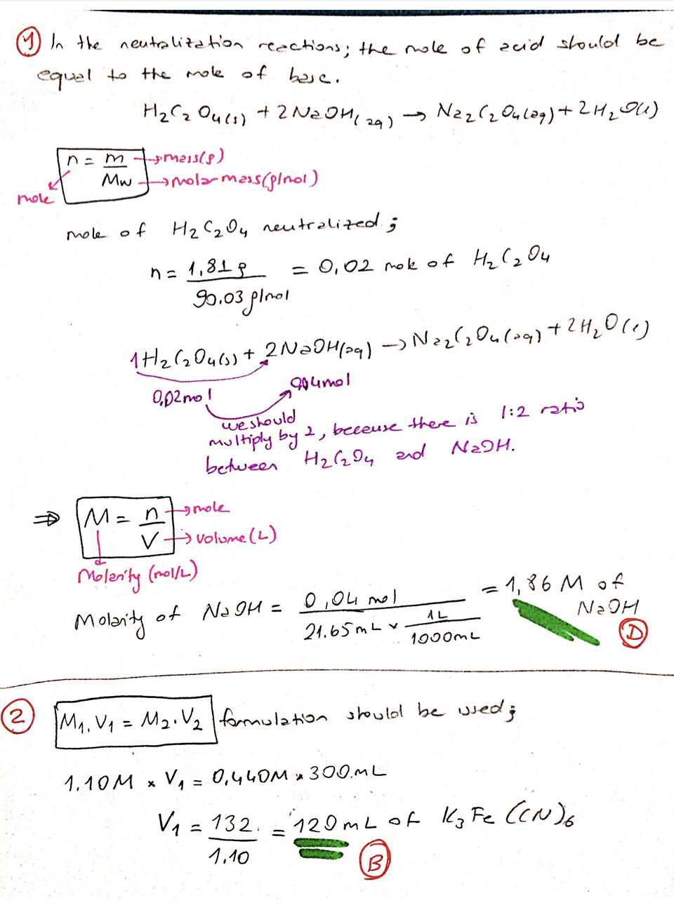 1. A student neutralized 1.81 g H2C2O4 with 21.65 mL of NaOH solut...