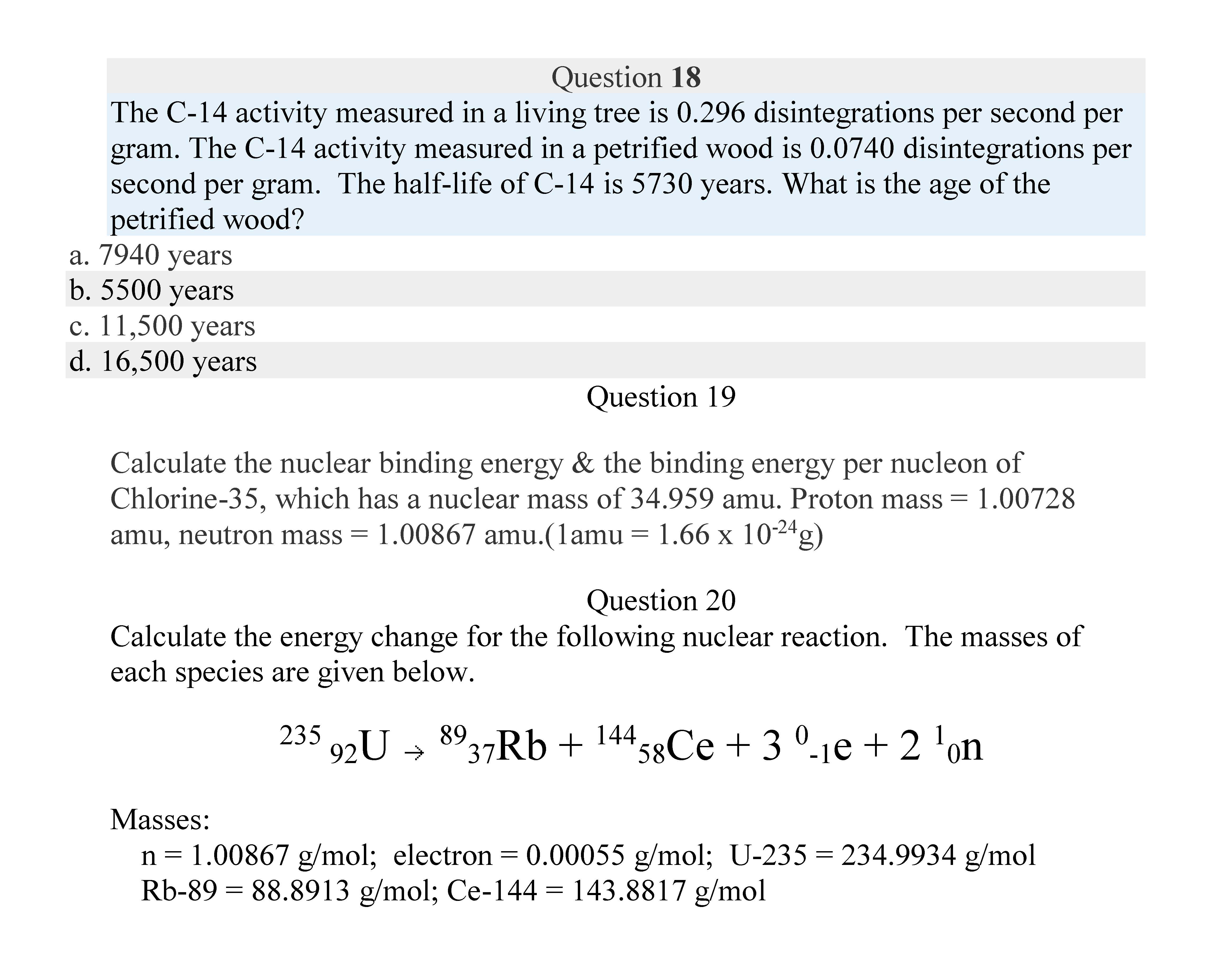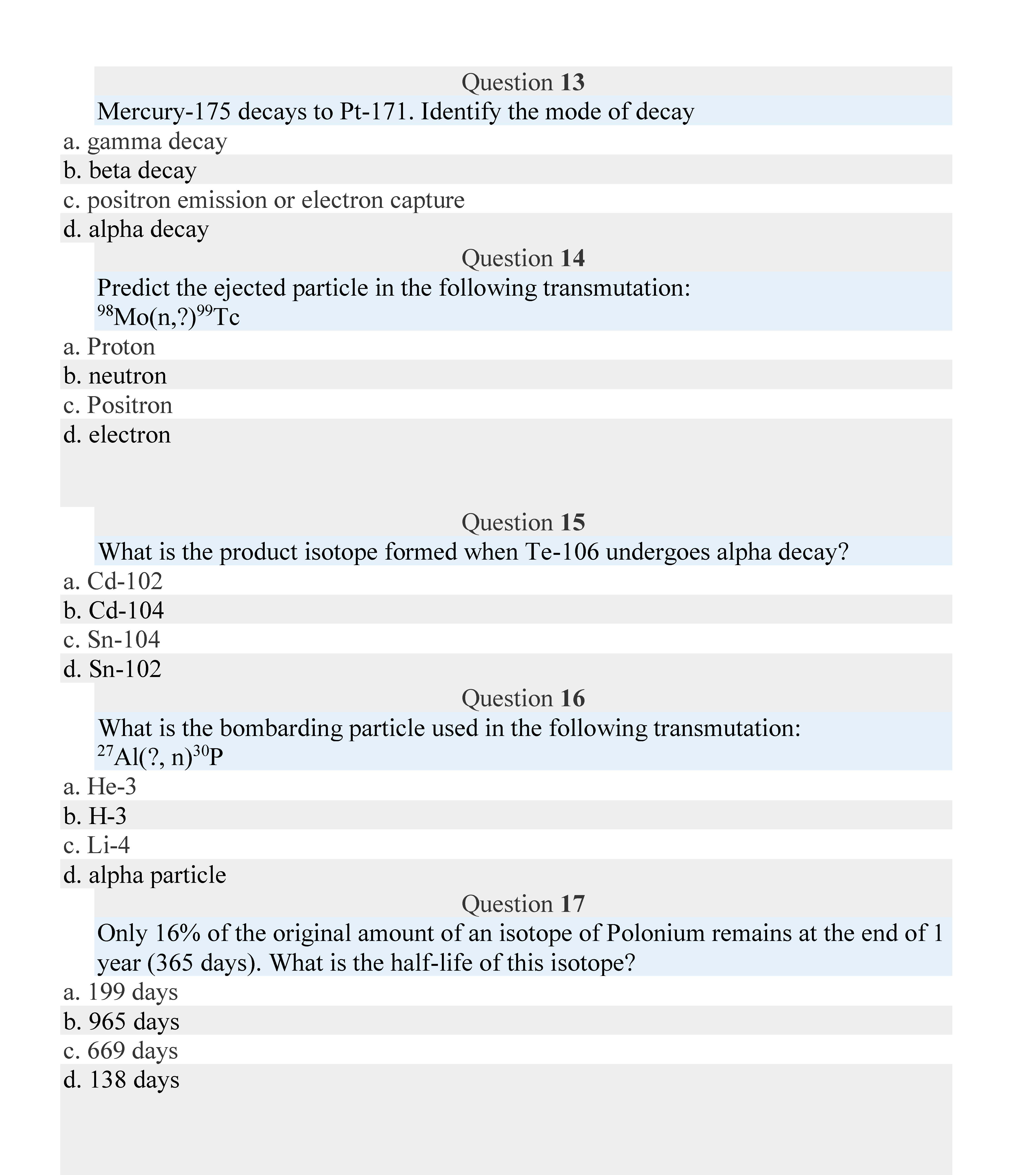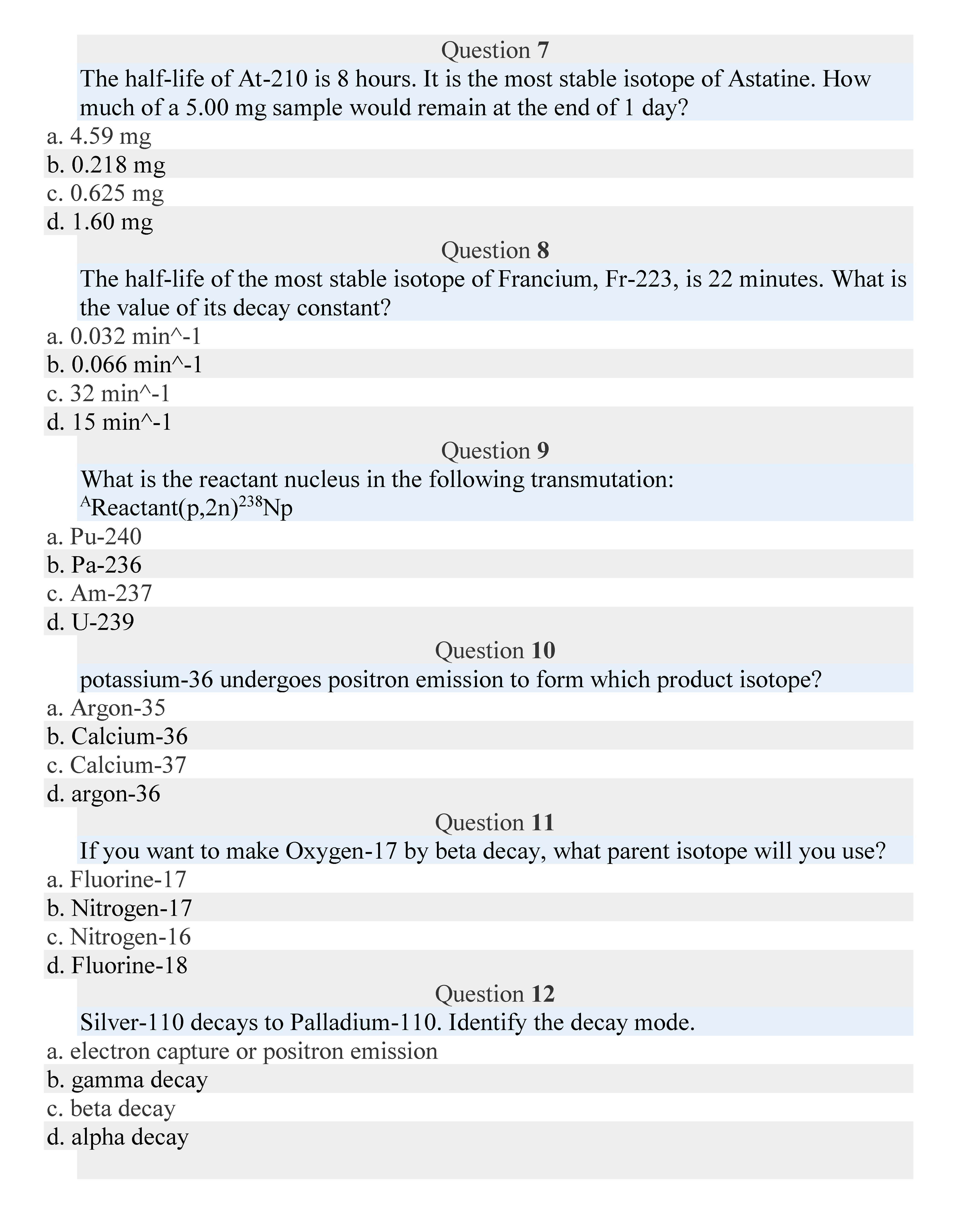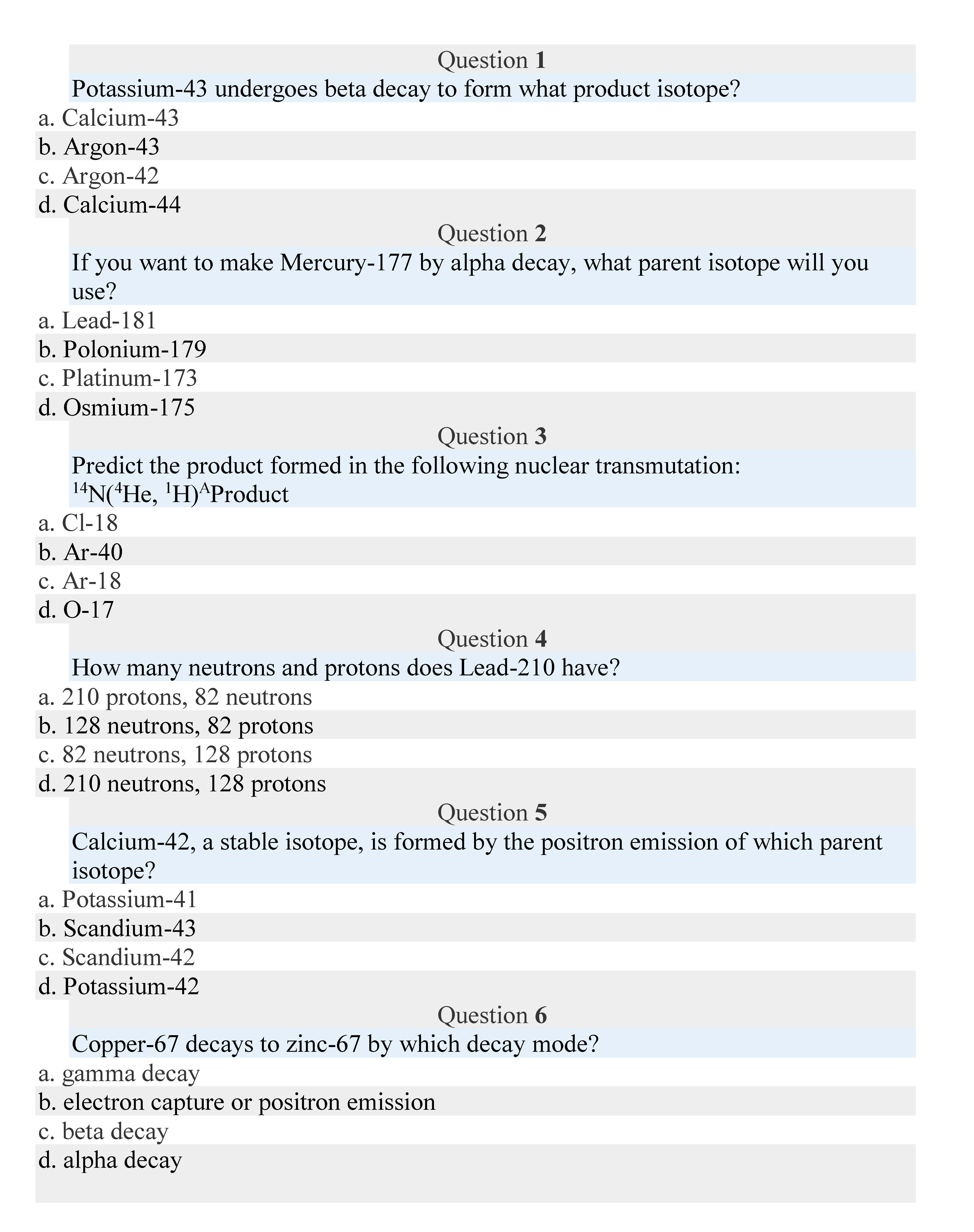Question 1 Potassium-43 undergoes beta decay to form what product ...