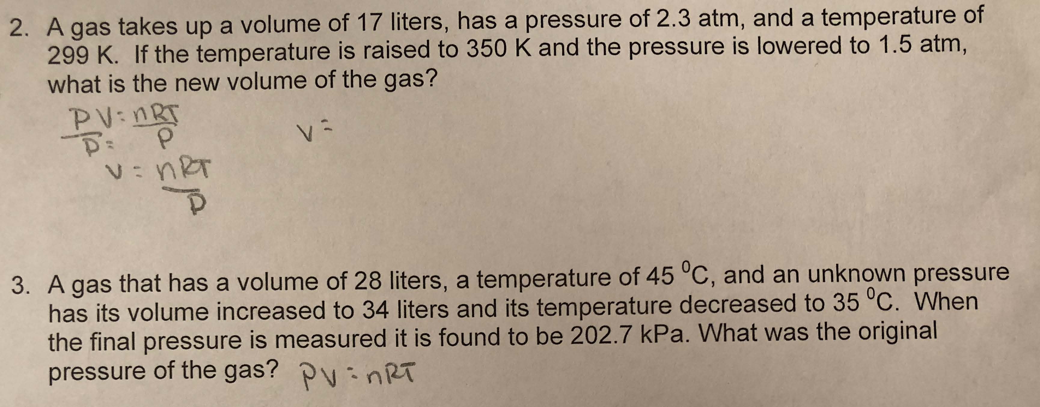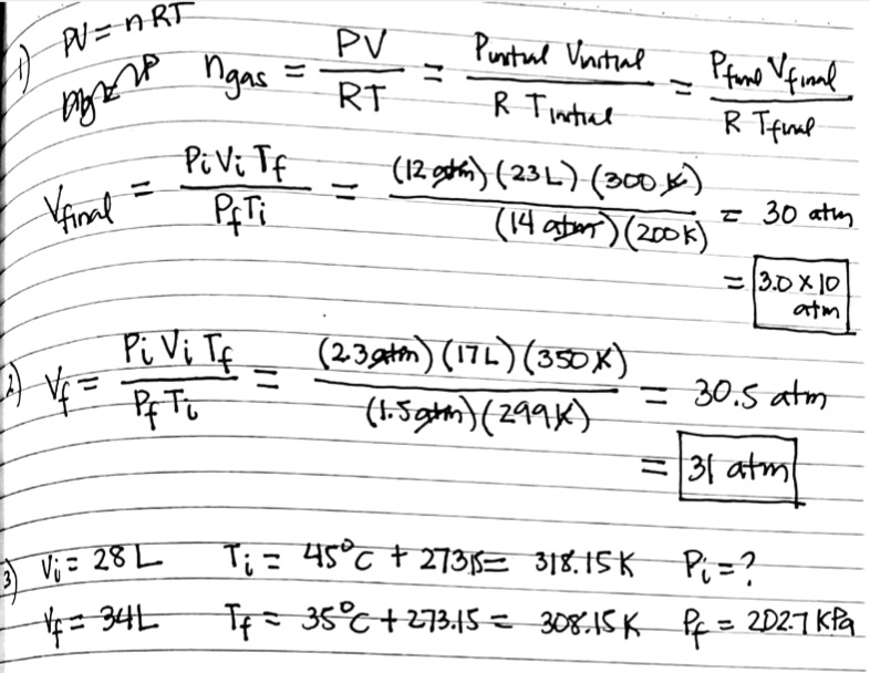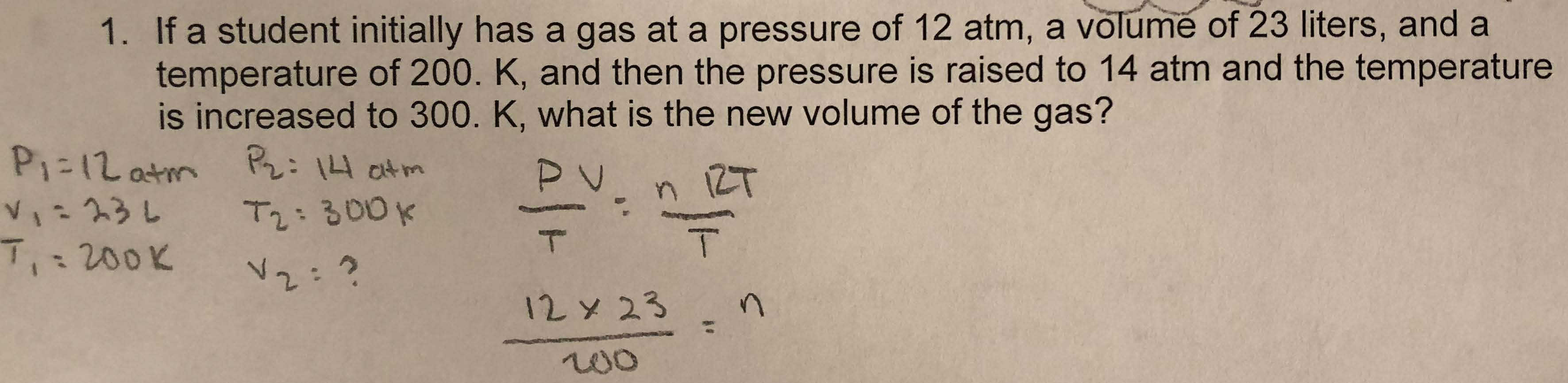 1. If a student initially has a gas at a pressure of 12 atm, a volu...