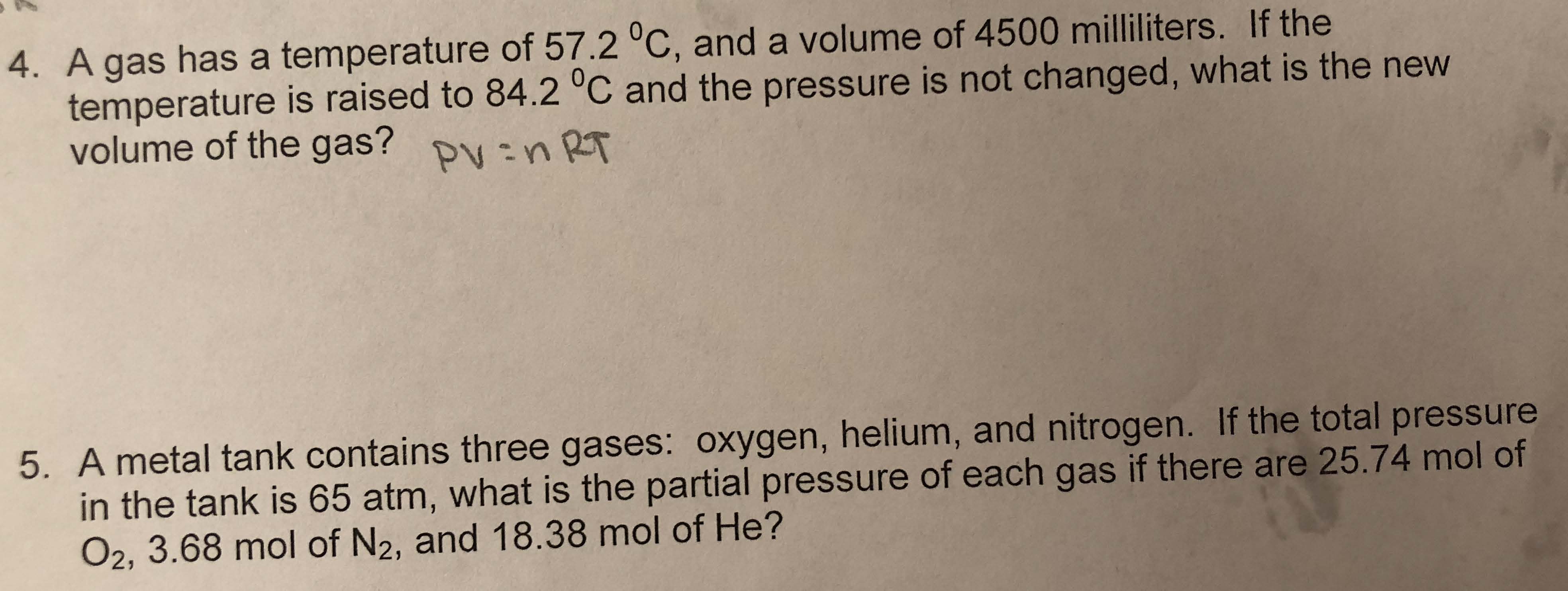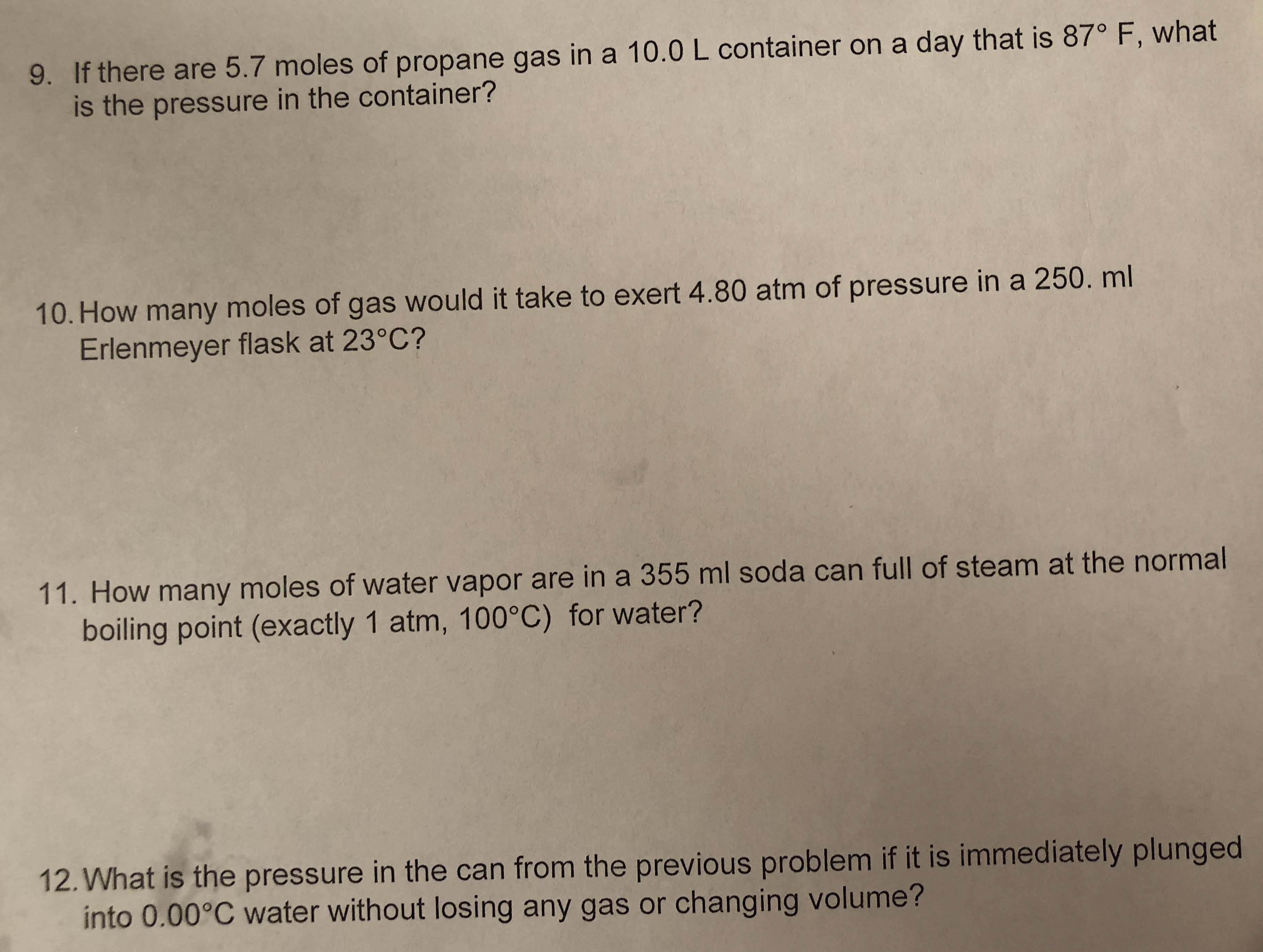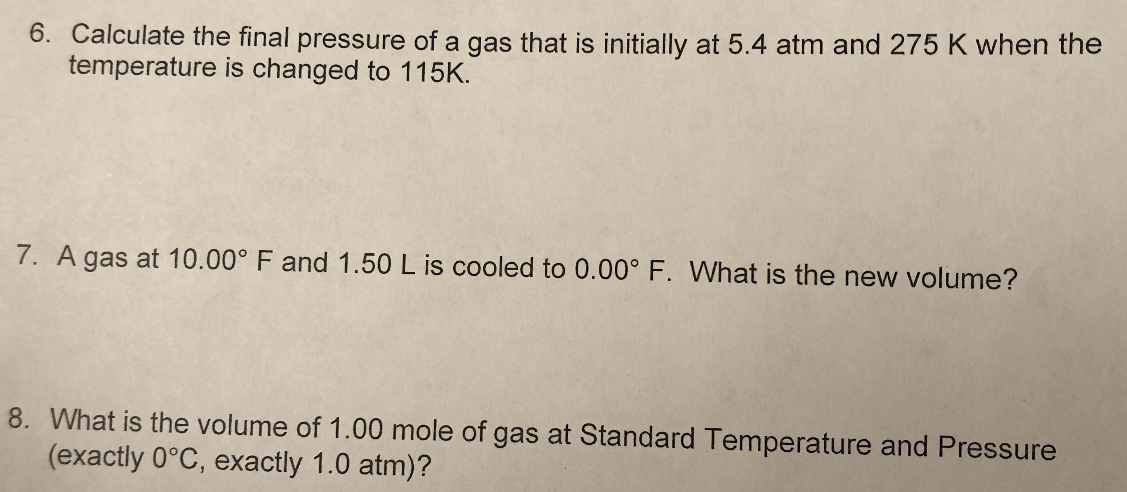 1. If a student initially has a gas at a pressure of 12 atm, a volu...