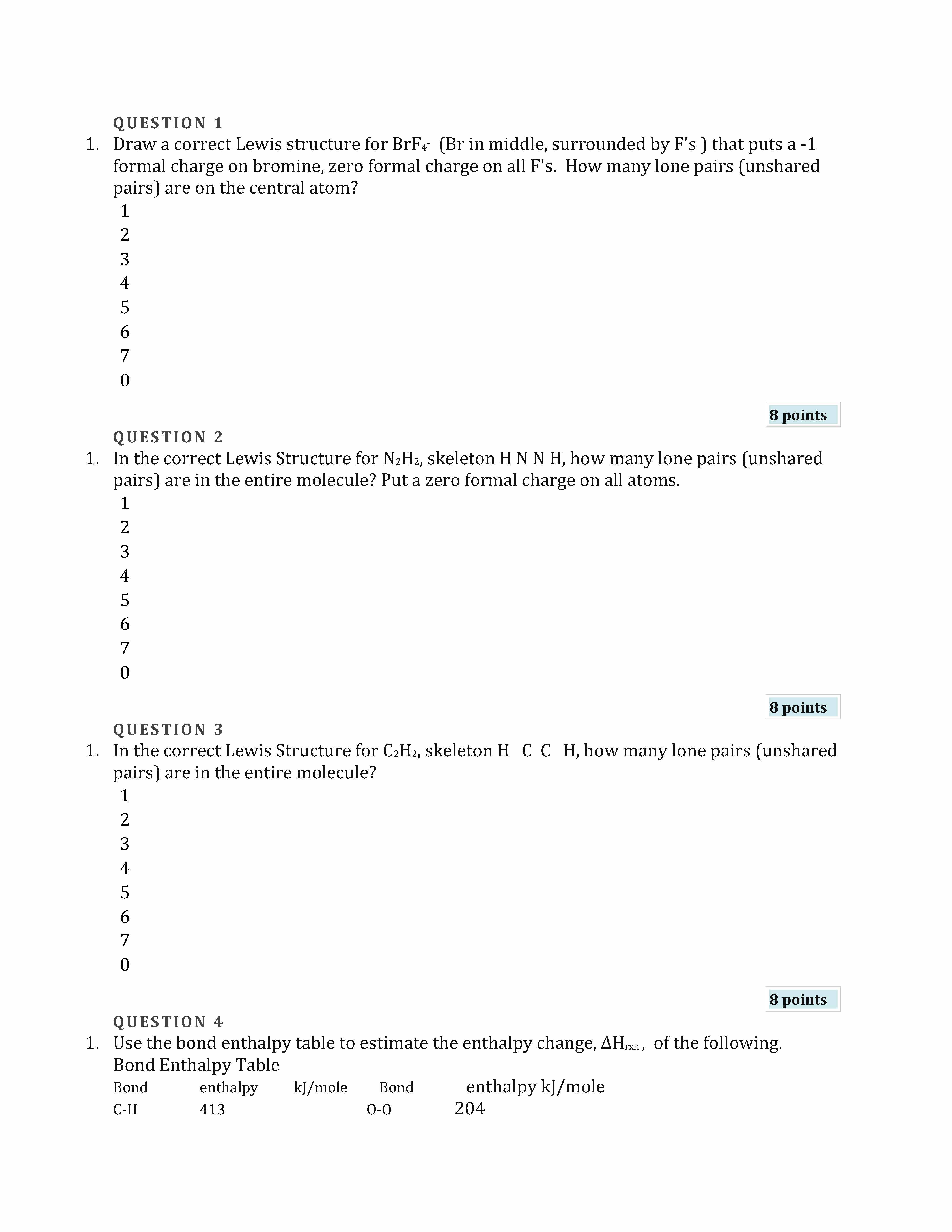 QUESTION 1 1. Draw a correct Lewis structure for BrF4- (Br in mi...