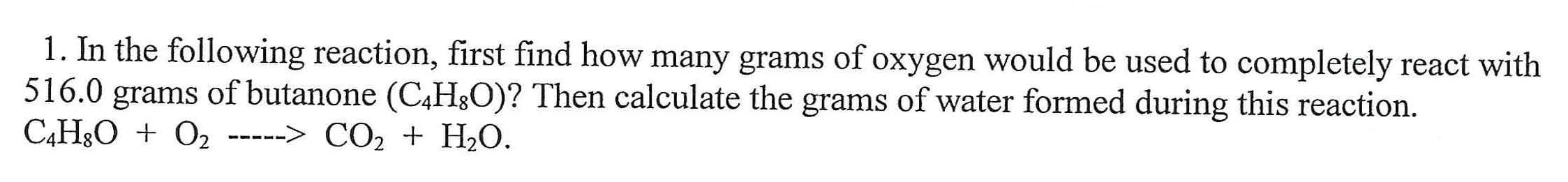 1. In the following reaction, first find how many grams of oxygen w...