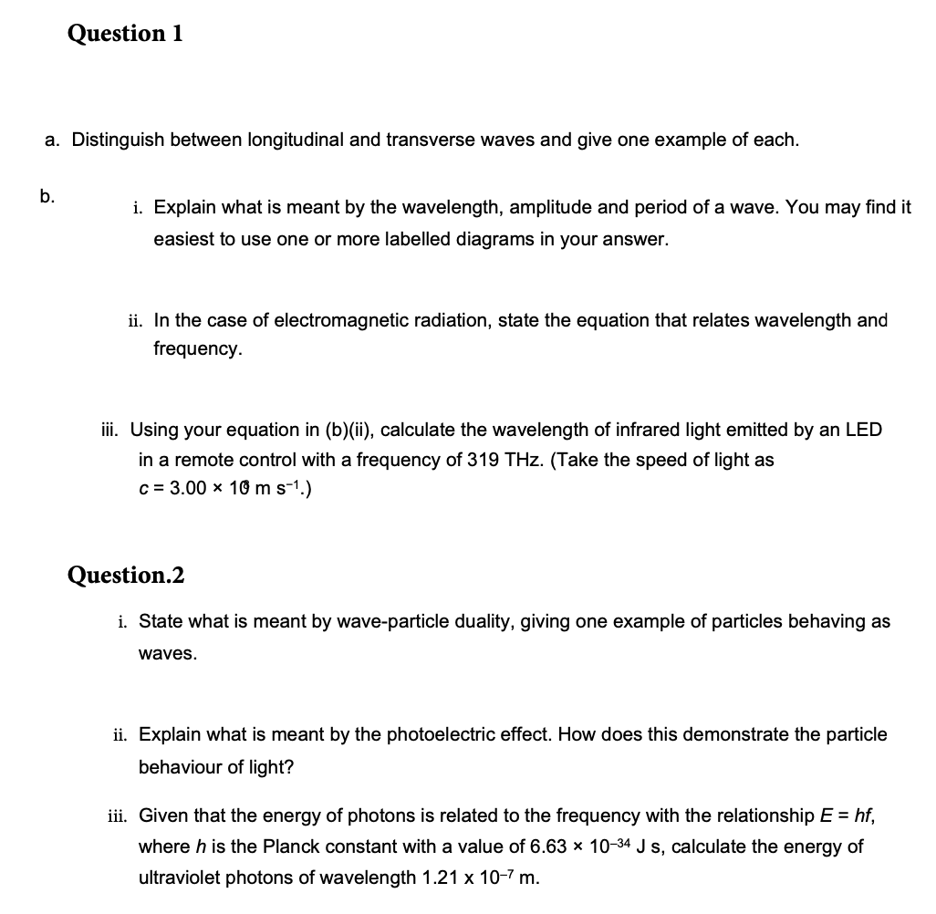 Question 1 a. Distinguish between longitudinal and transverse wave...
