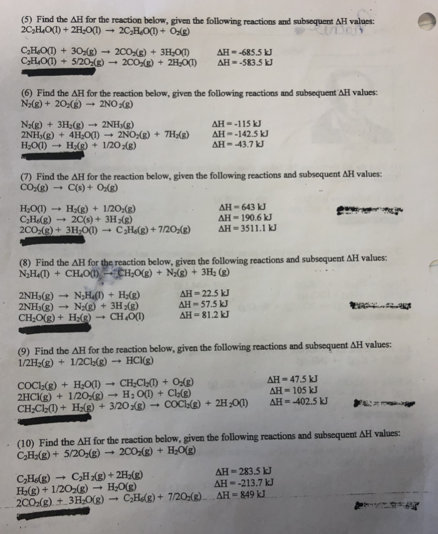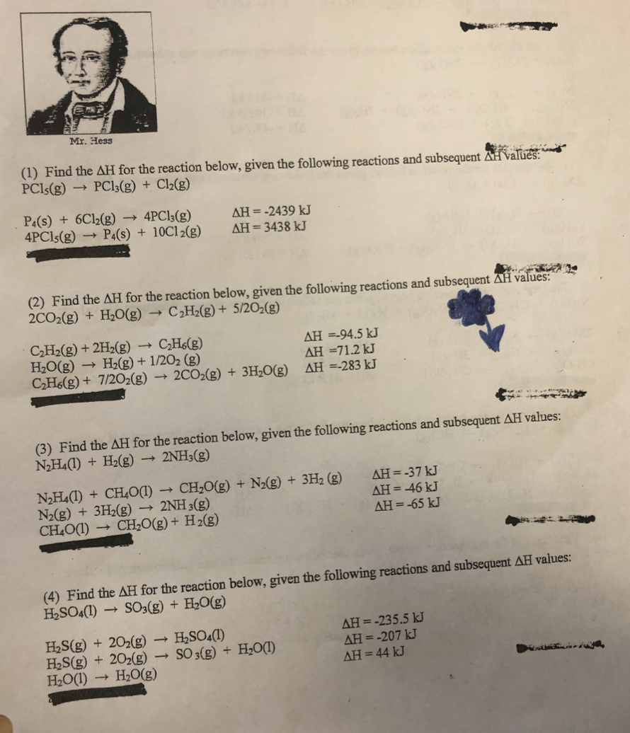 Mr. Hess (1) Find the AH for the reaction below, given the followi...
