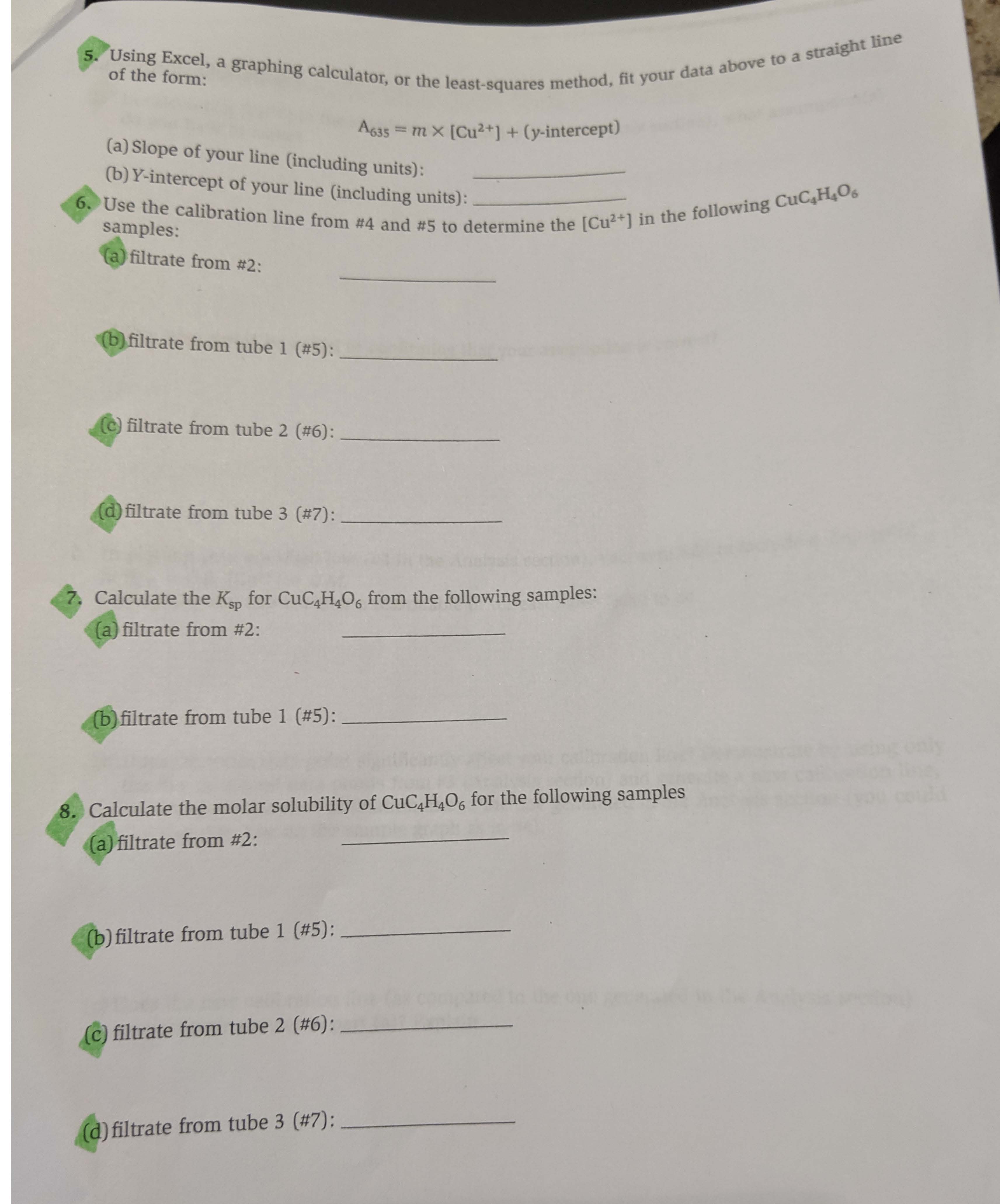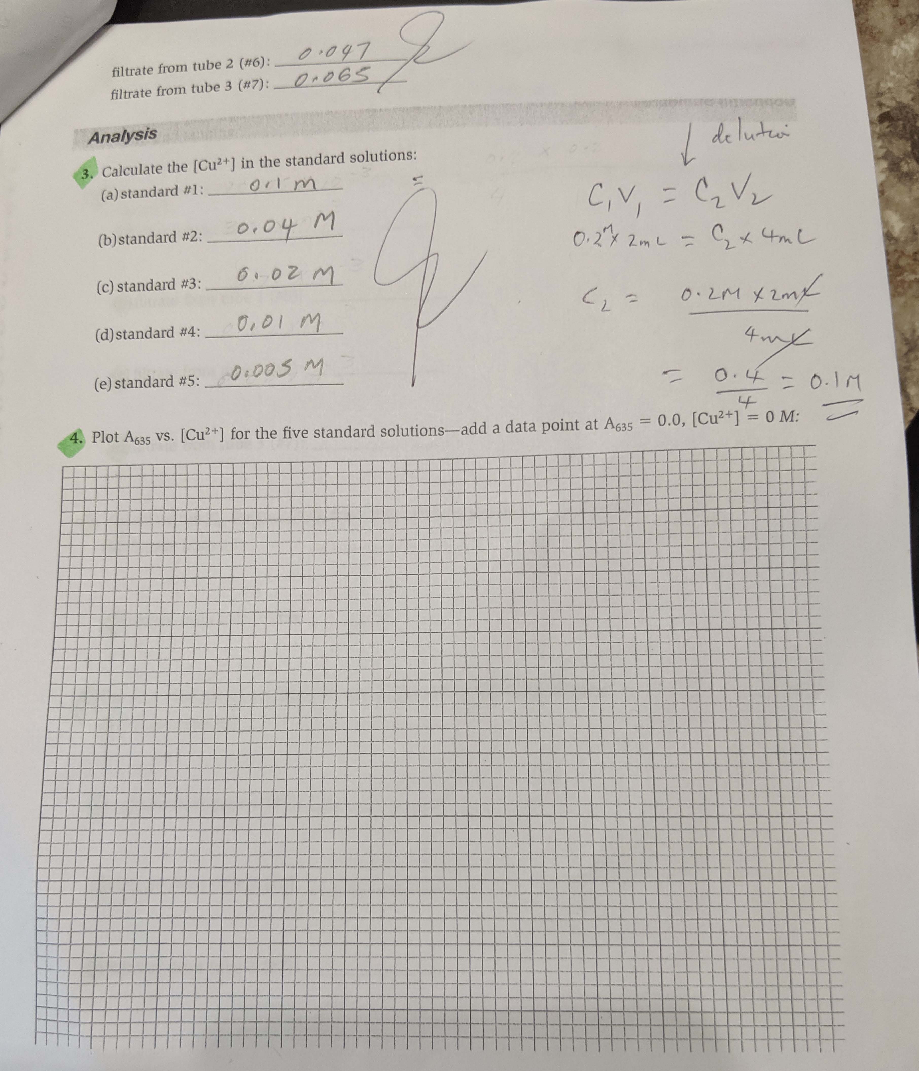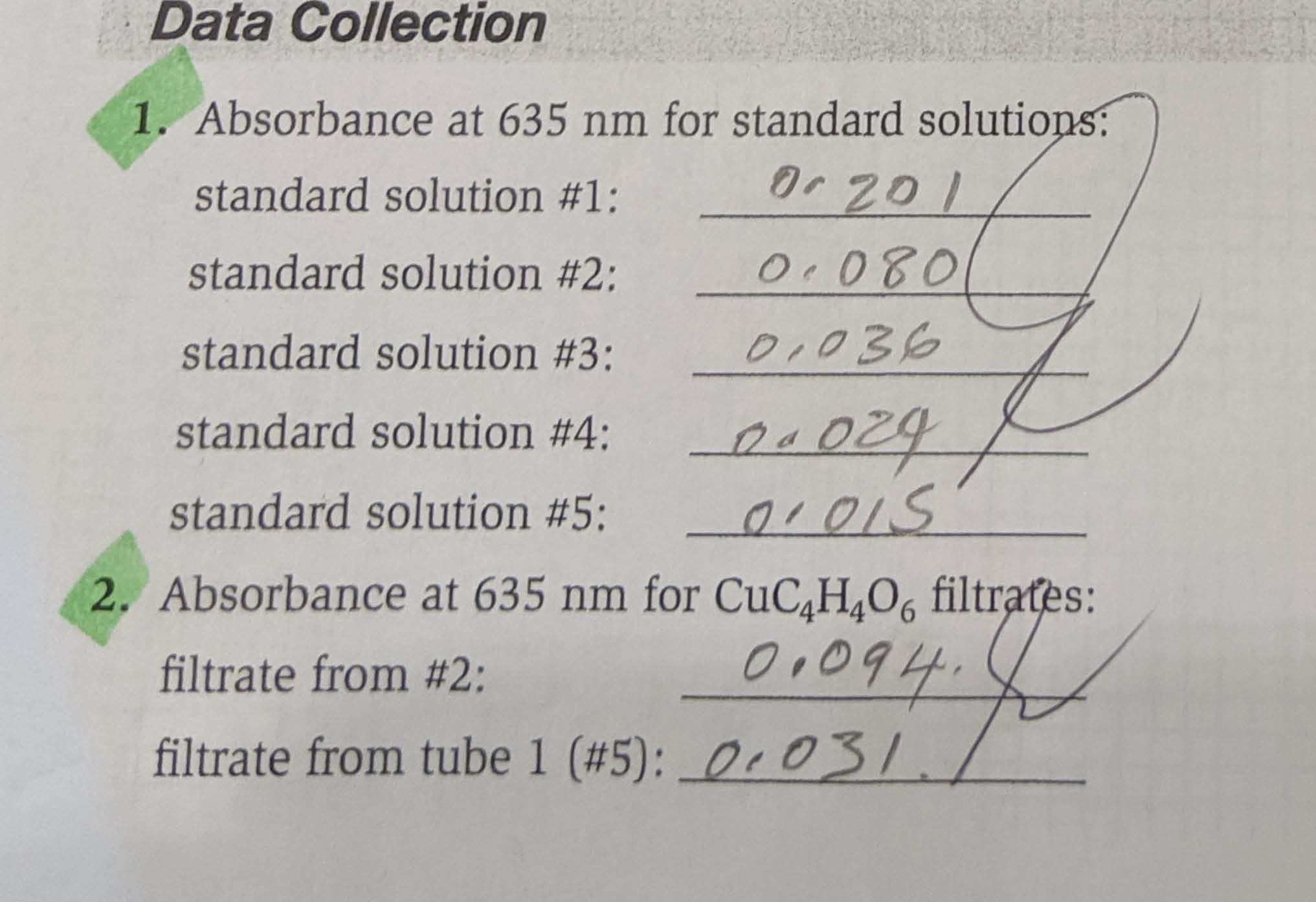Data Collection 1. Absorbance at 635 nm for standard solutions: s...
