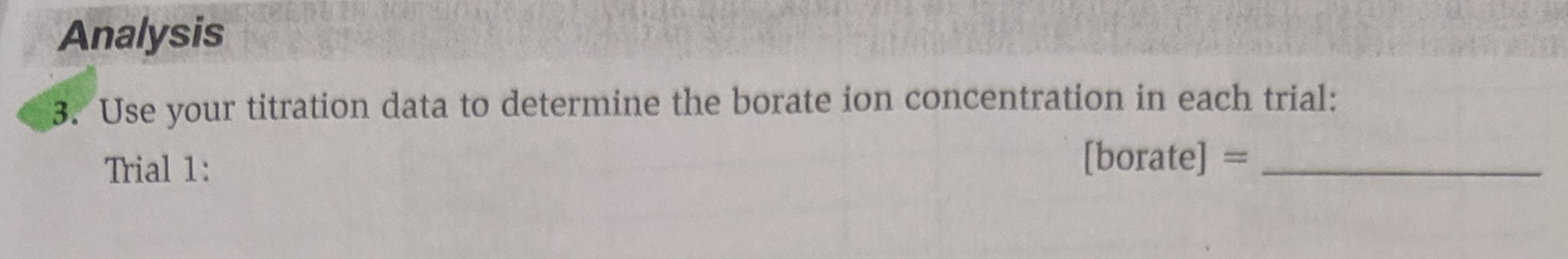 Analysis 3. Use your titration data to determine the borate ion co...