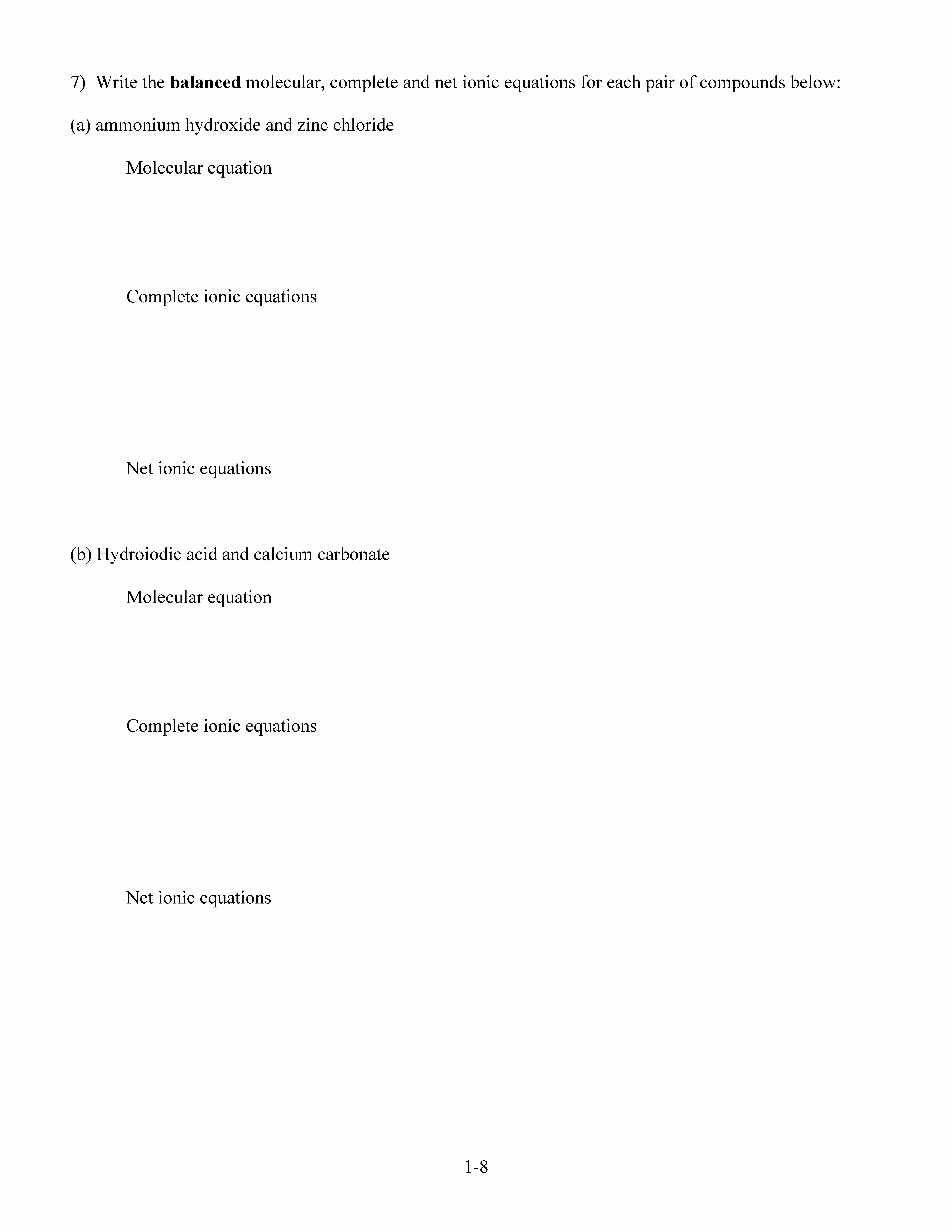 I. General Chemistry I Review Questions 1) Given the compounds and...