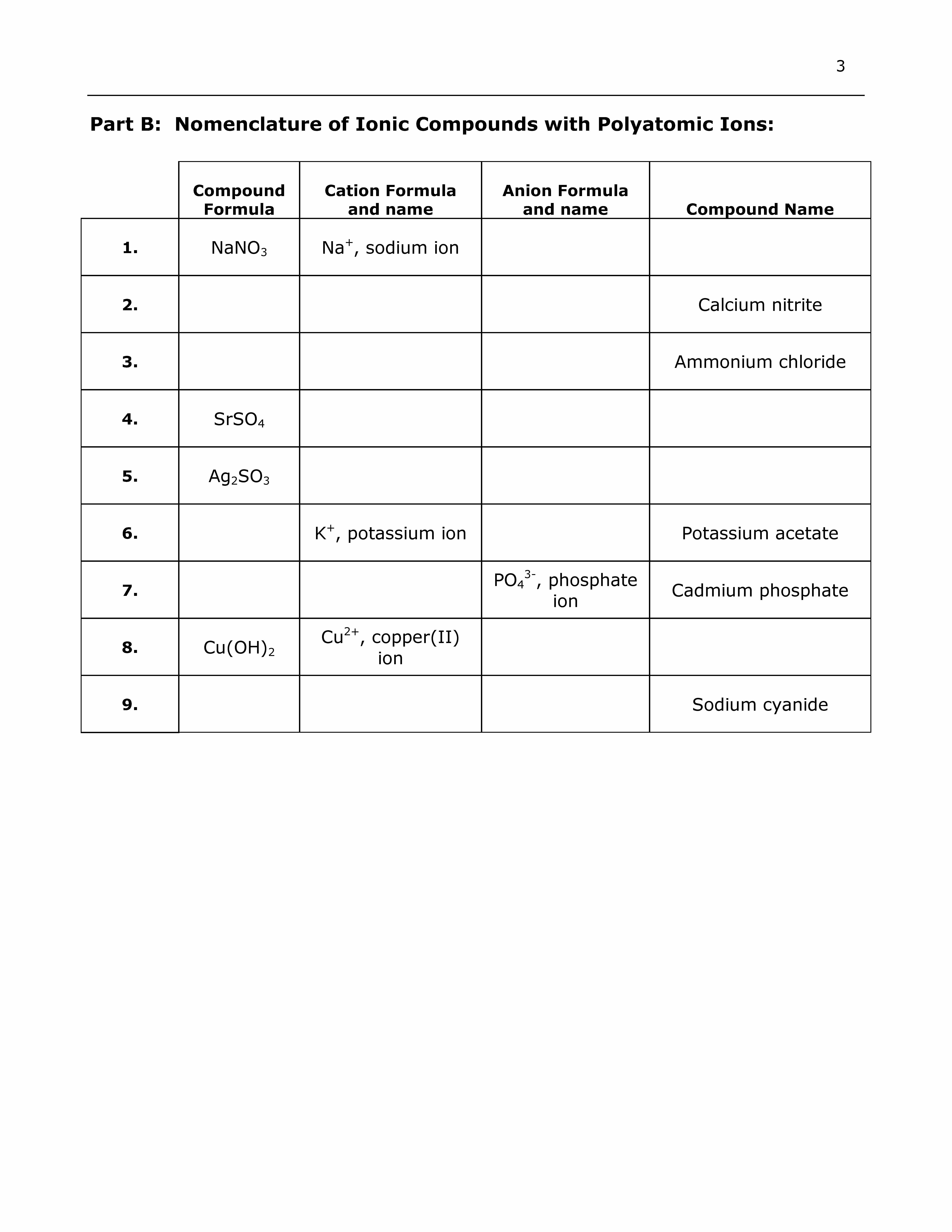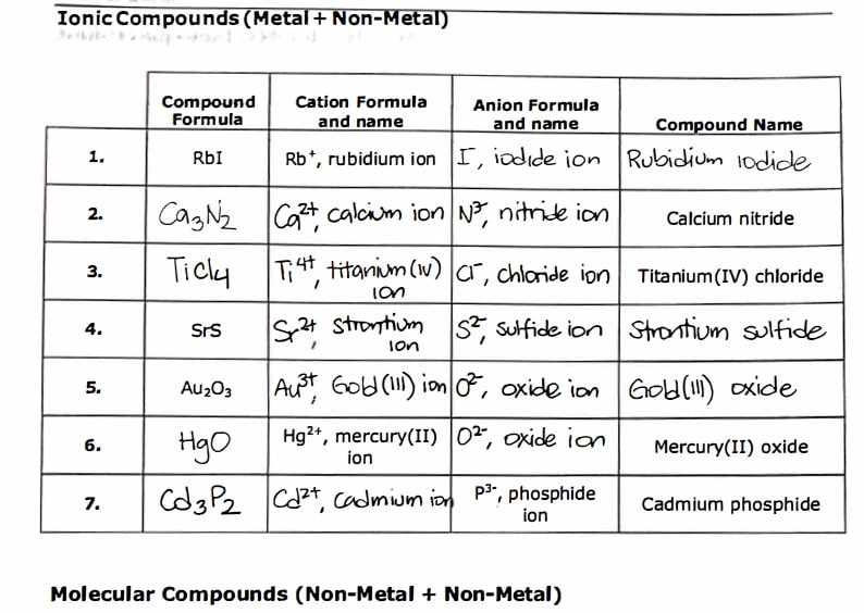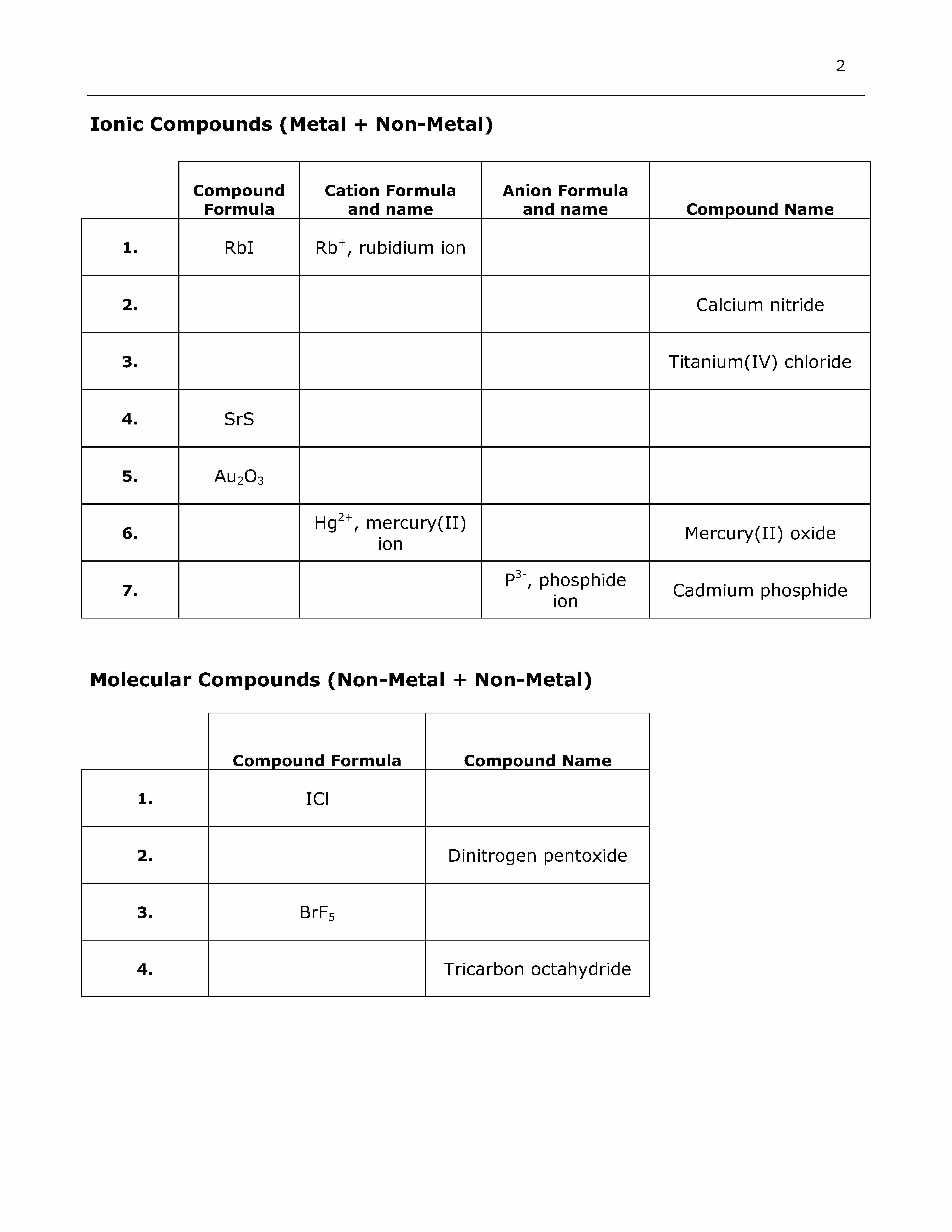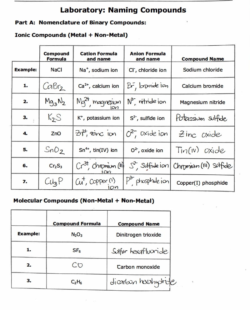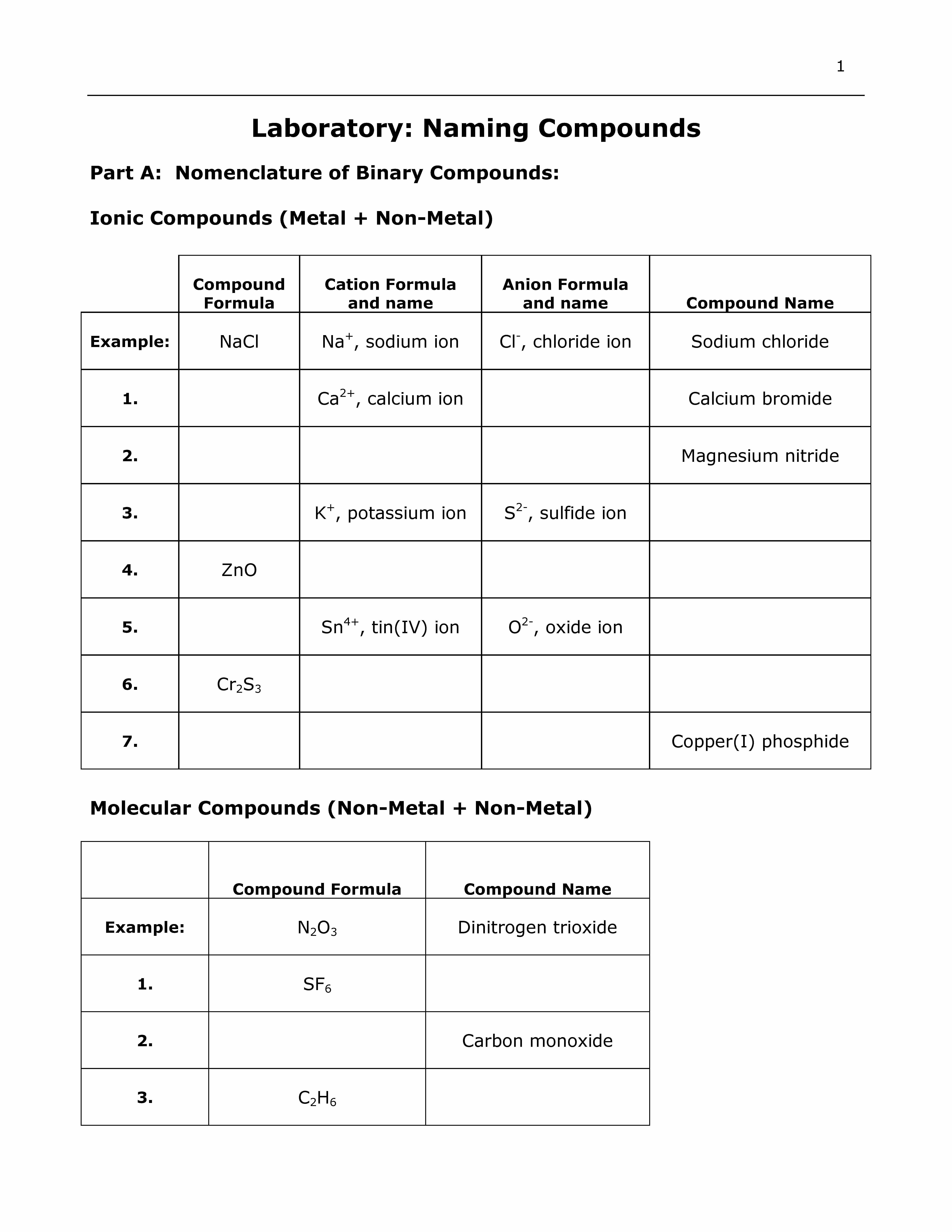 Laboratory: Naming Compounds Part A: Nomenclature of Binary Compou...