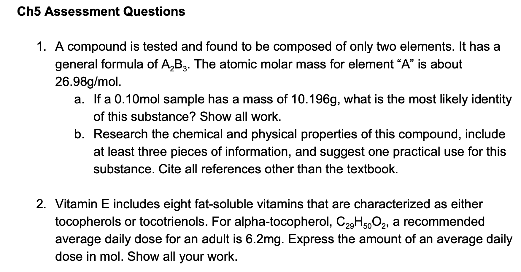 Ch5 Assessment Questions 1. A compound is tested and found to be c...