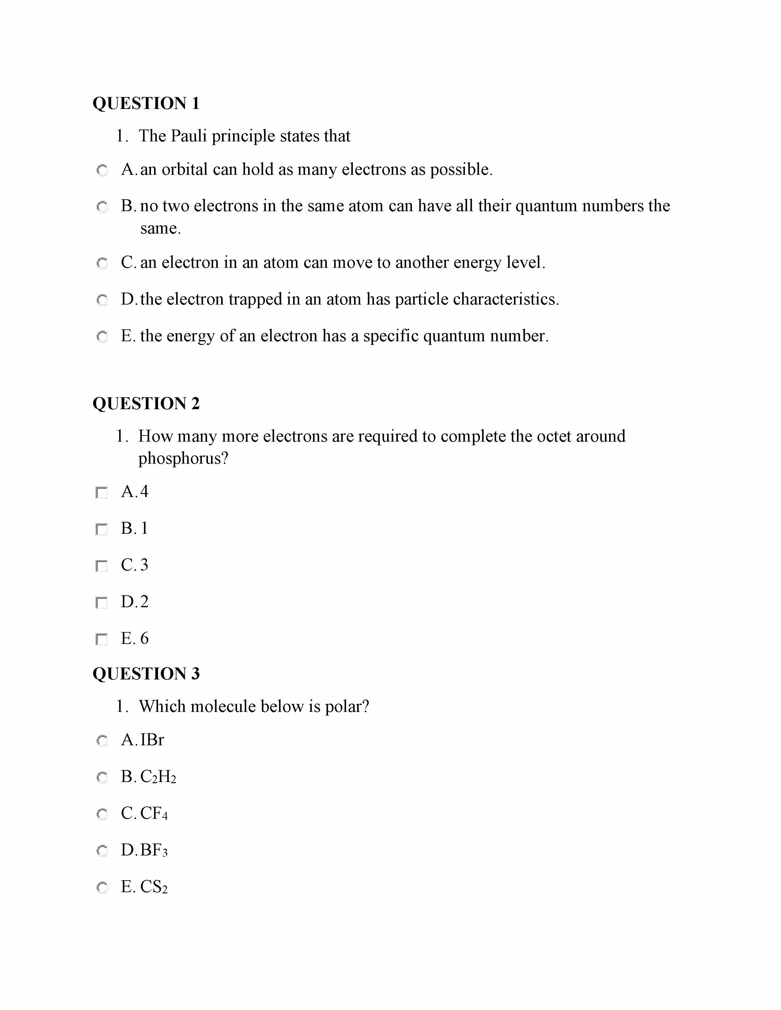 QUESTION 1 1. The Pauli principle states that A. an orbital can h...