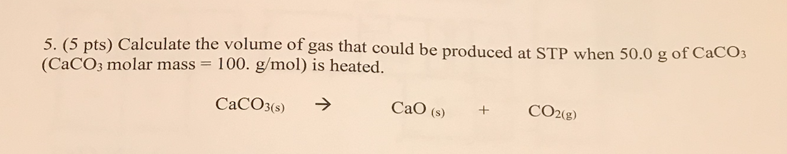 5. (5 pts) Calculate the volume of gas that could be produced at ST...