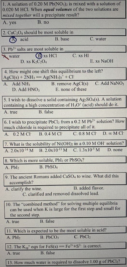 1. A solution of 0.20 M Pb(NO3)2 is mixed with a solution of 0.020...