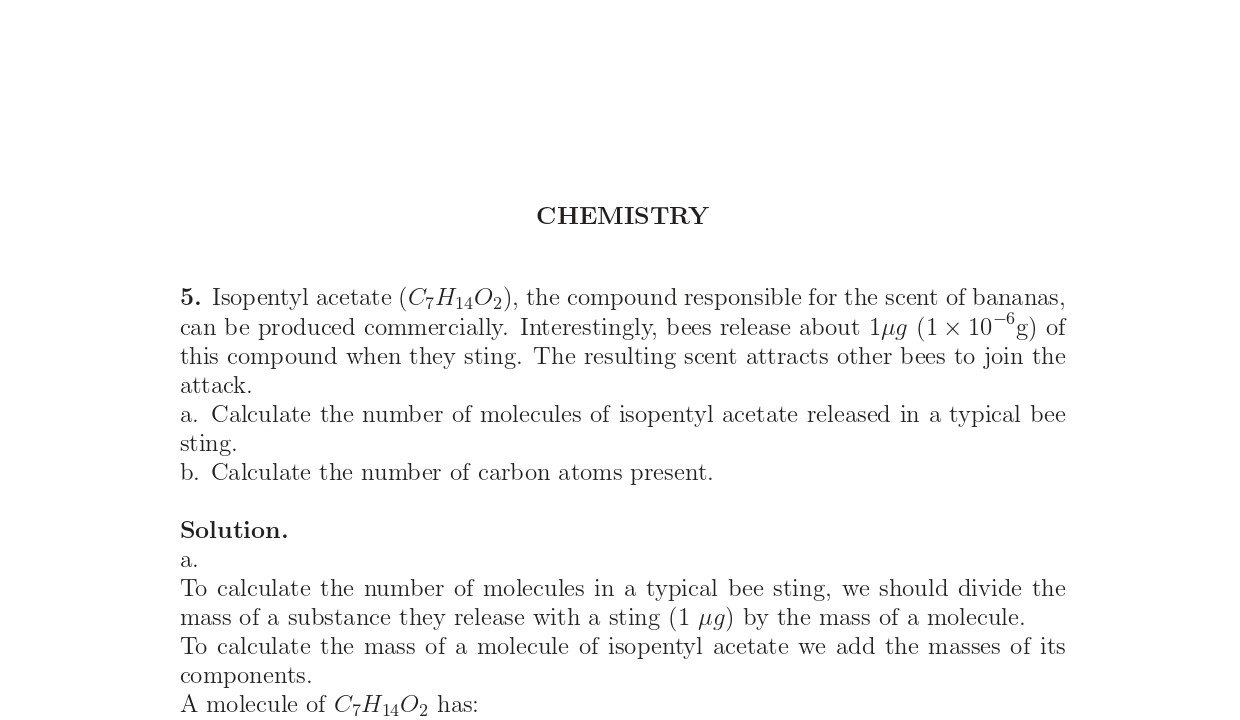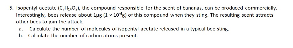 5. Isopentyl acetate (C7H14O2), the compound responsible for the sc...