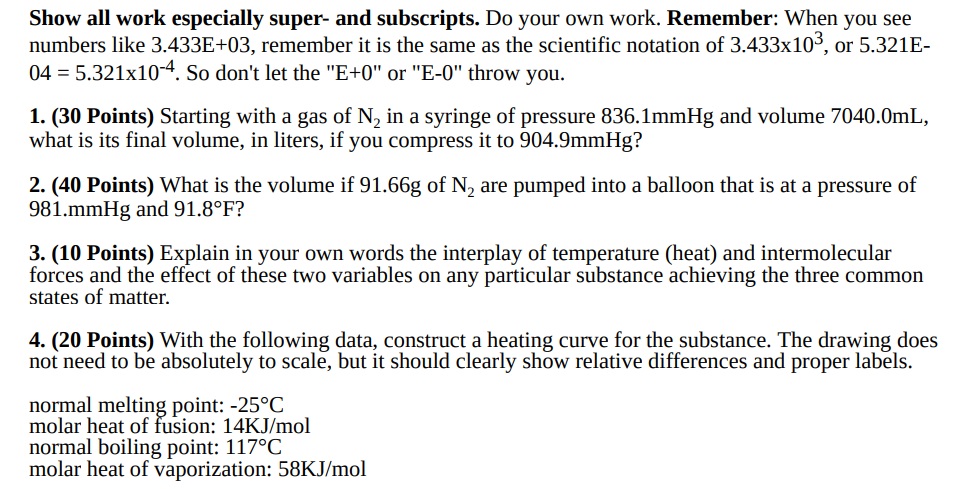 Show all work especially super- and subscripts. Do your own work. R...