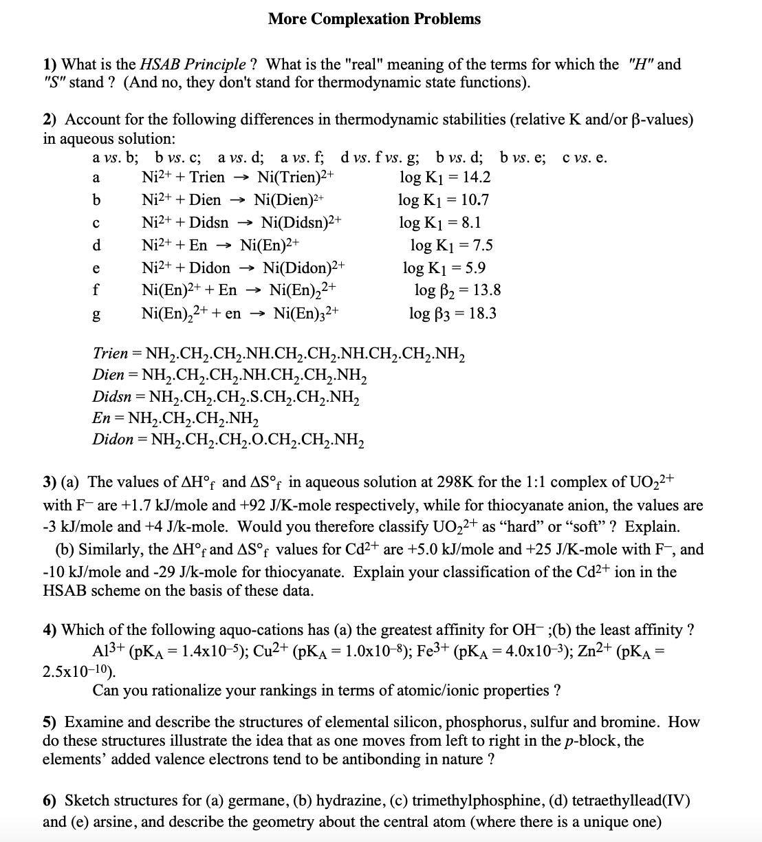 More Complexation Problems 1) What is the HSAB Principle ? What is...