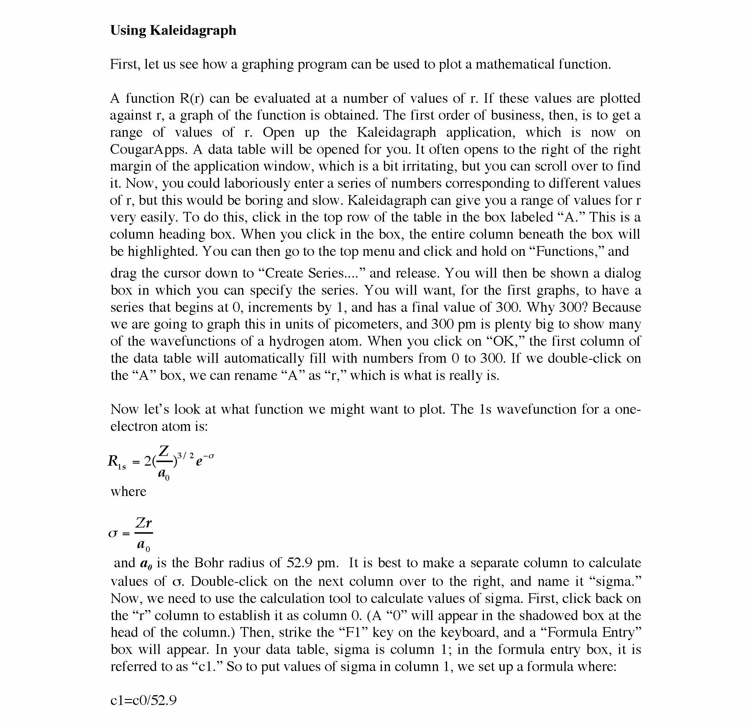 Using Kaleidagraph First, let us see how a graphing program can be...