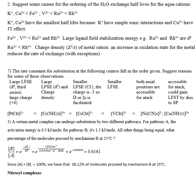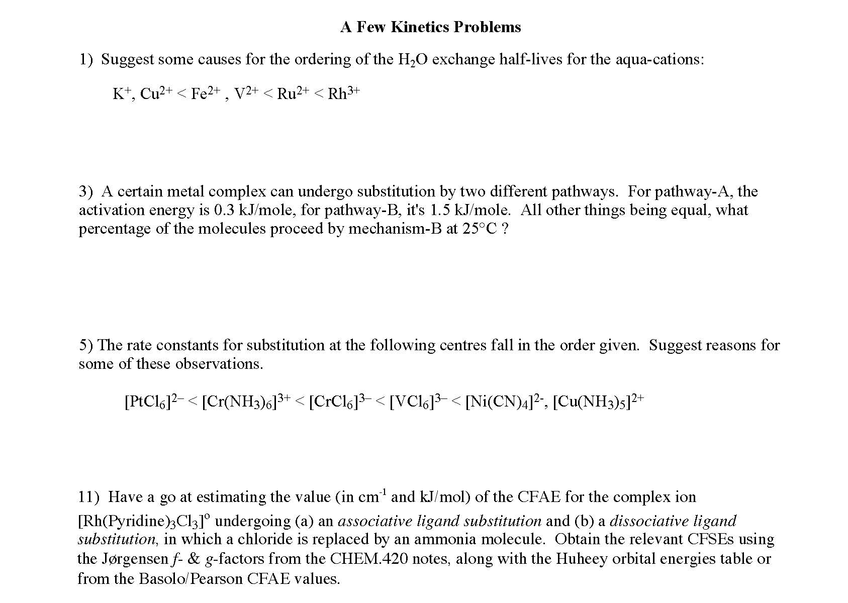 A Few Kinetics Problems 1) Suggest some causes for the ordering of...