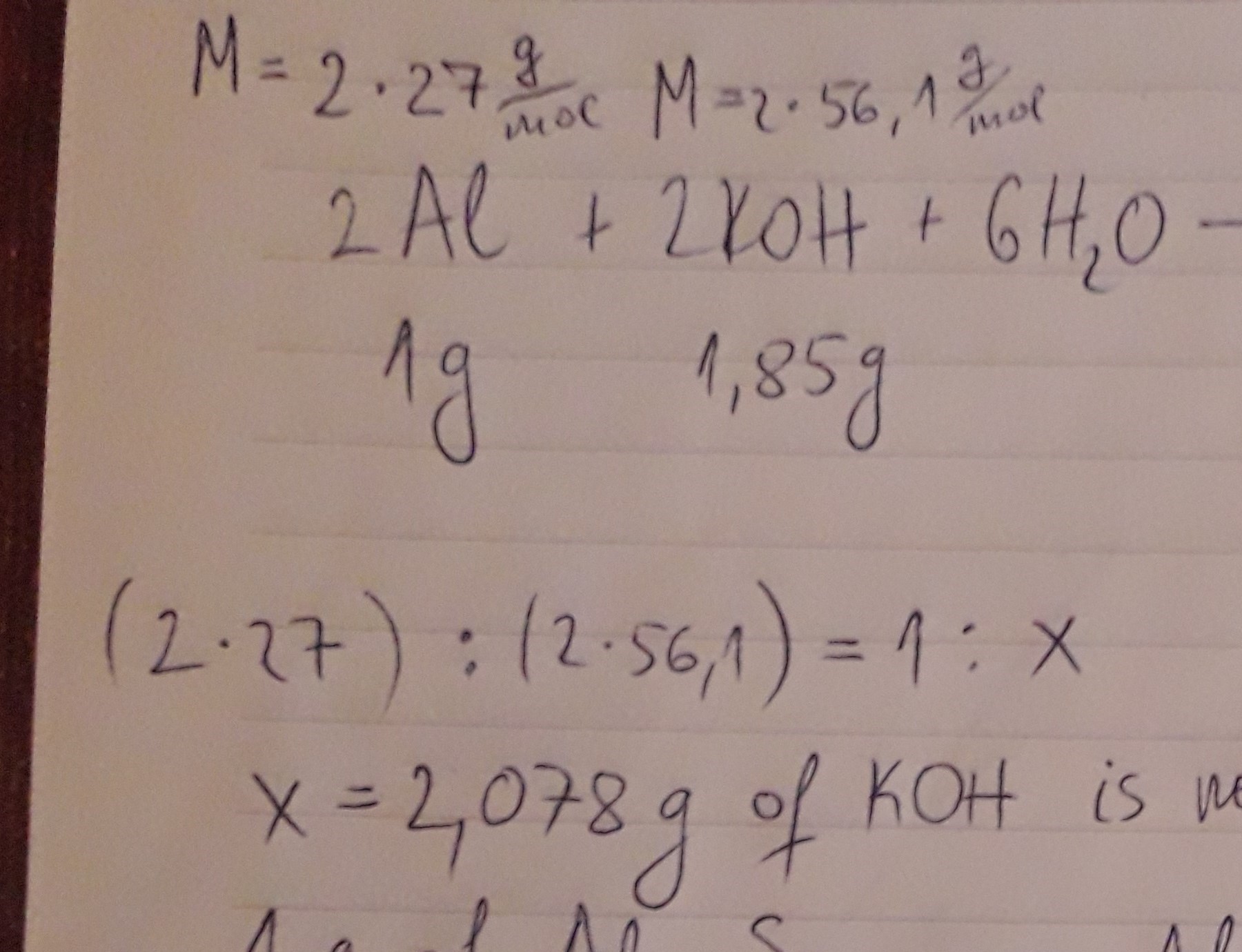 5. Consider the following reaction: 2 Al(s) + 2 KOH (aq) + 6 H2O(1...