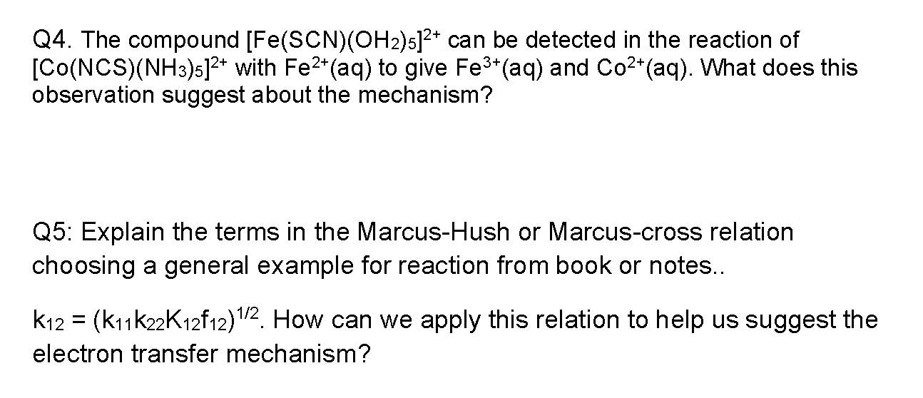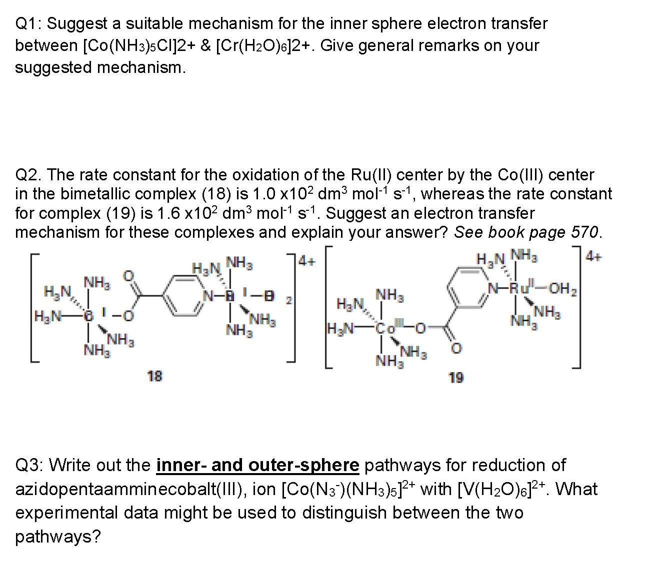 Q1: Suggest a suitable mechanism for the inner sphere electron tran...