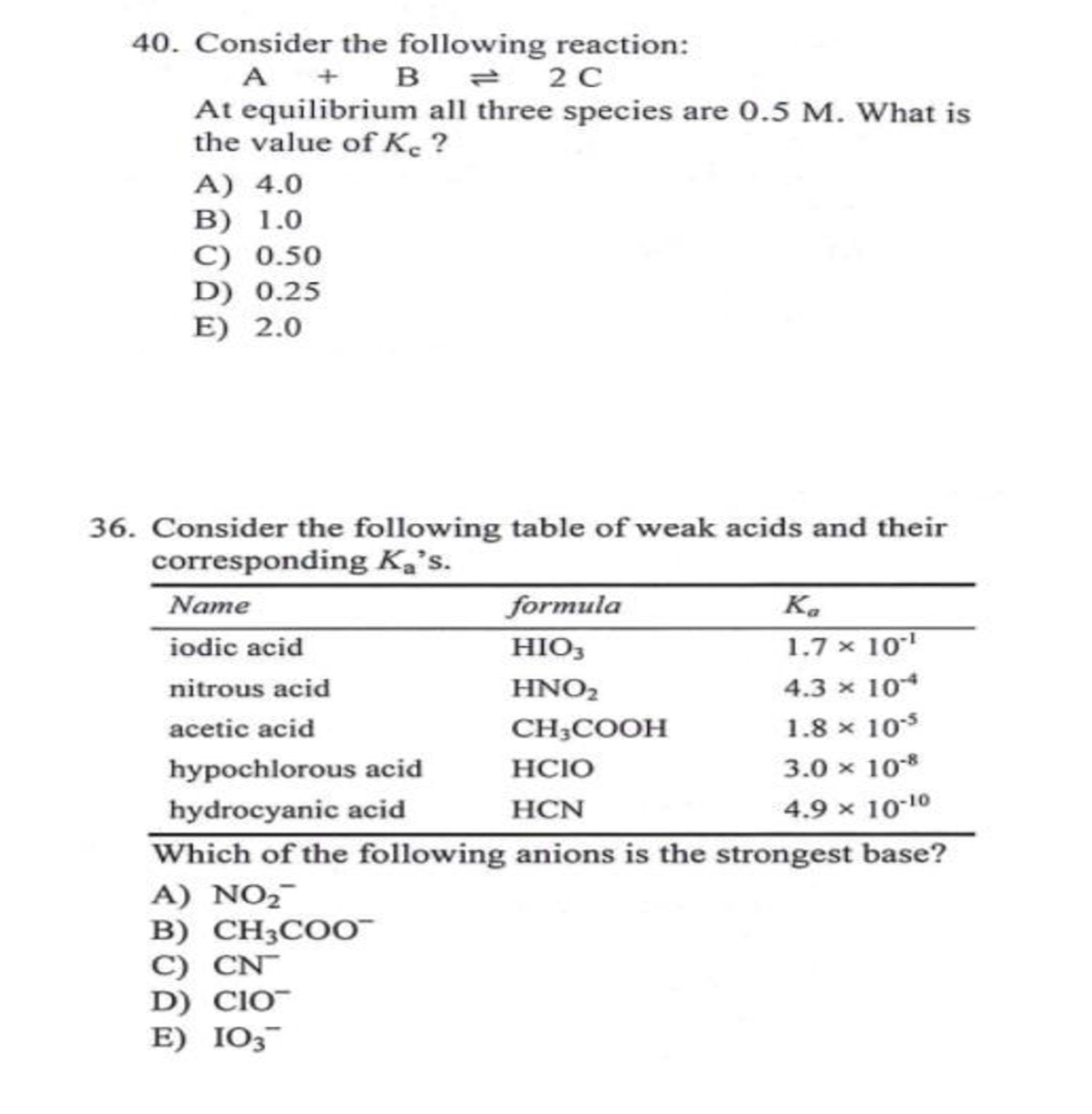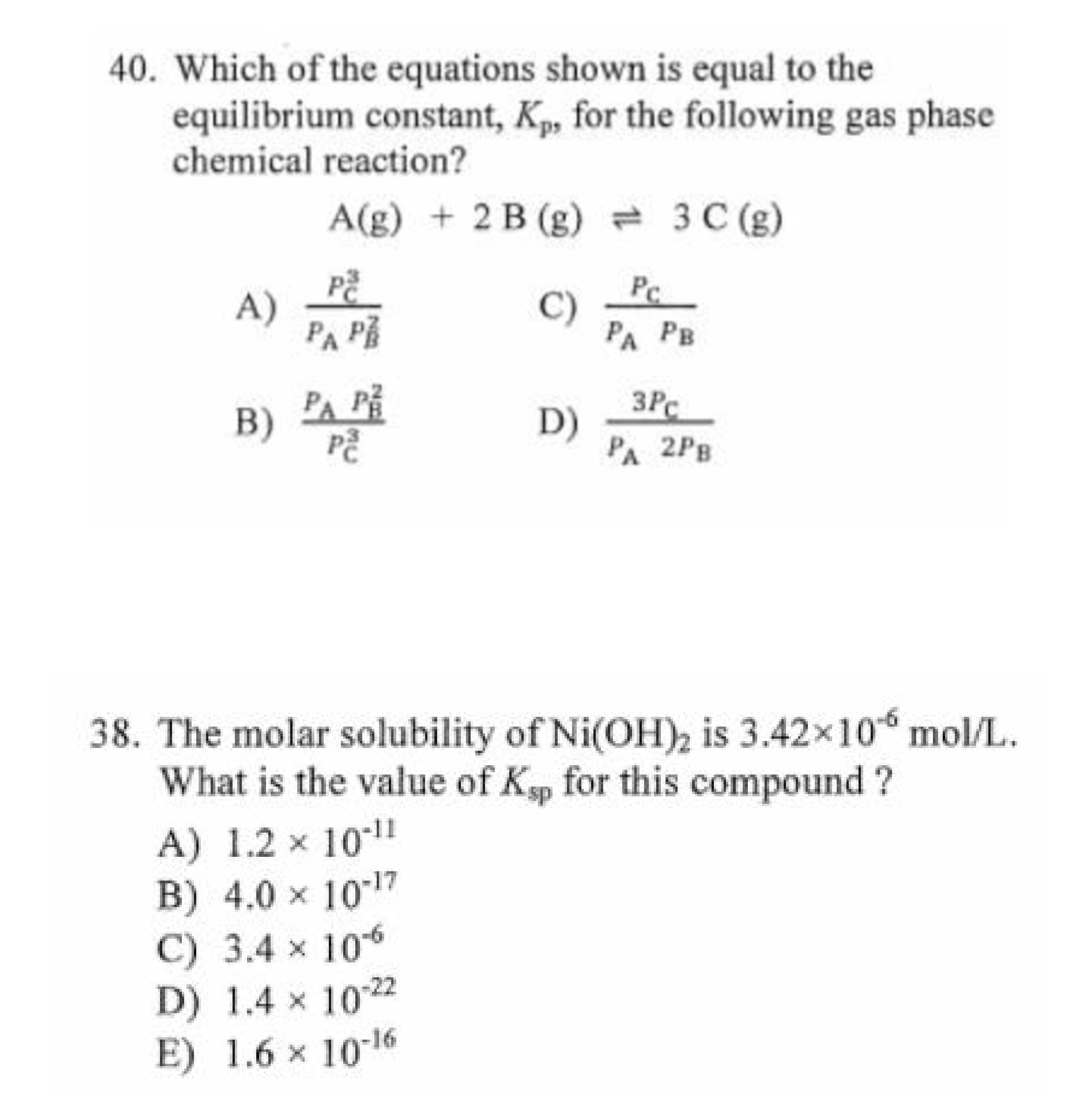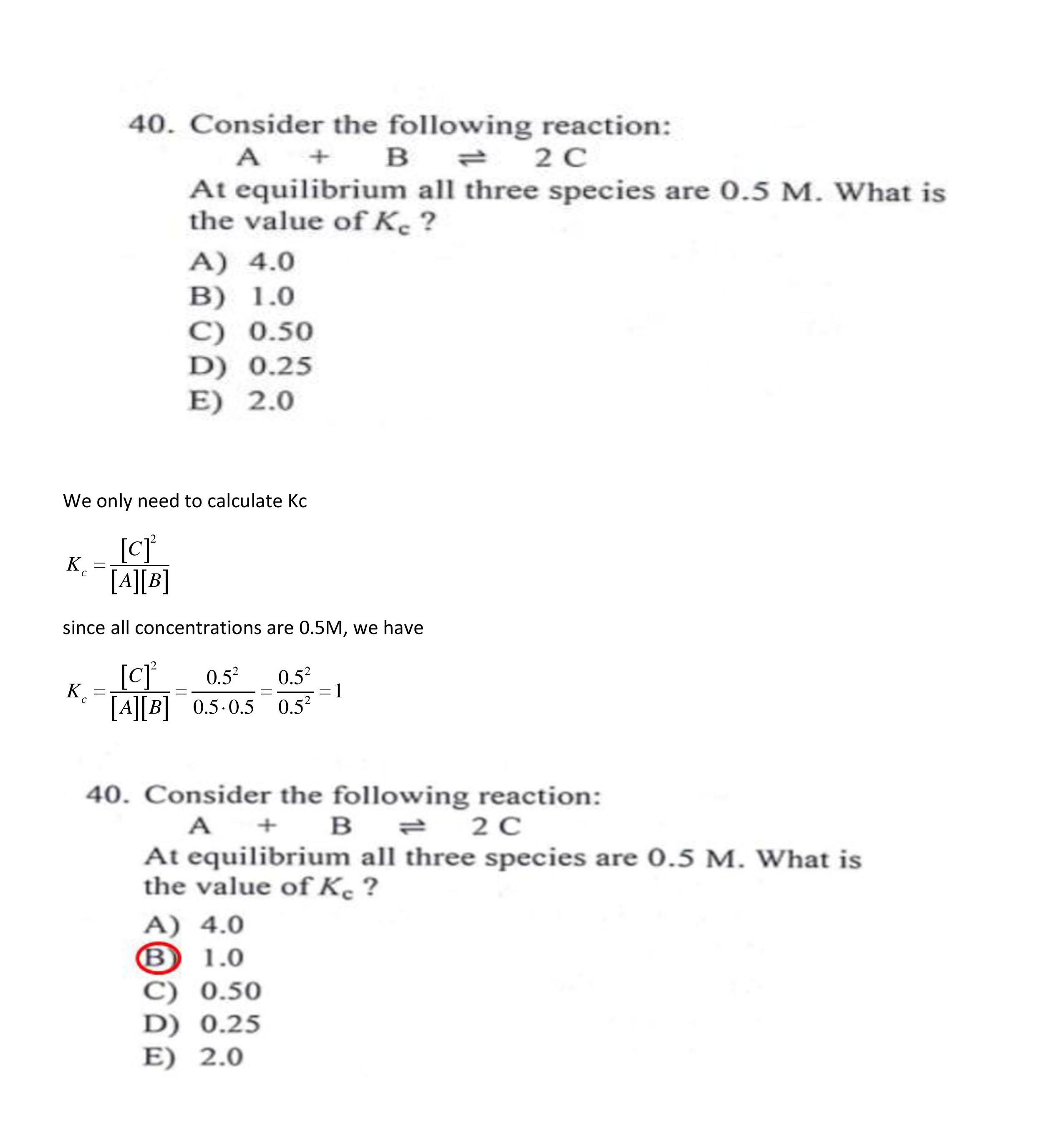 40. Consider the following reaction: A + B 1 2 C At equilibri...