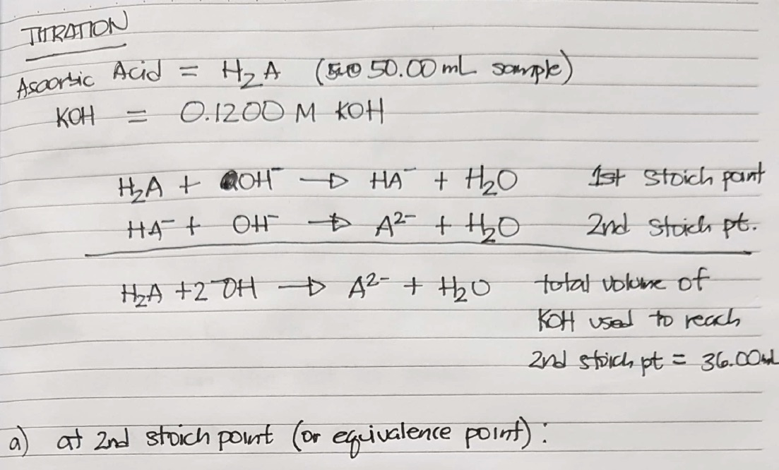 A 50.00 mL sample of ascorbic acid (H2C6H6O6) is titrated with 0.12...