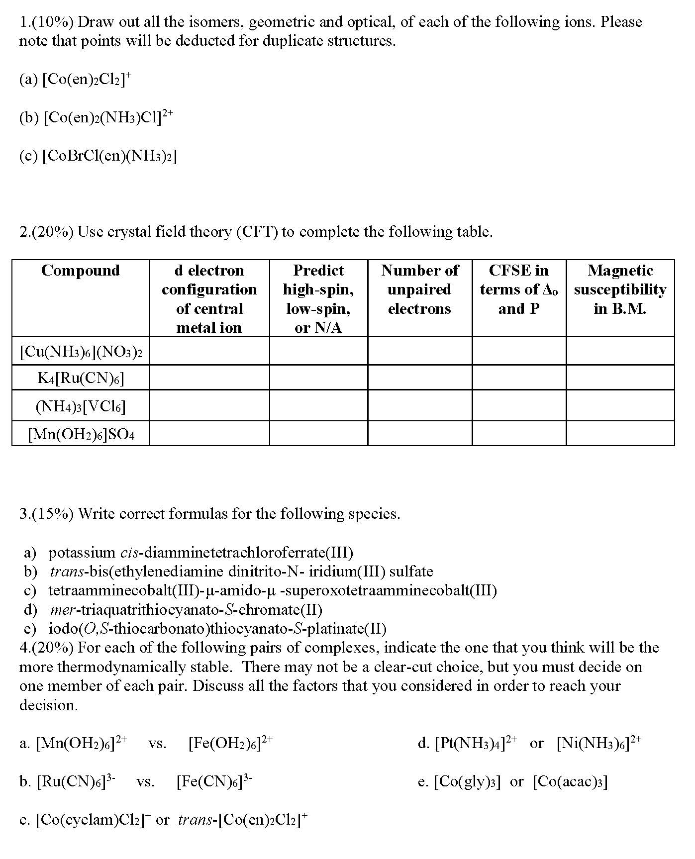 1.(10%) Draw out all the isomers, geometric and optical, of each of...