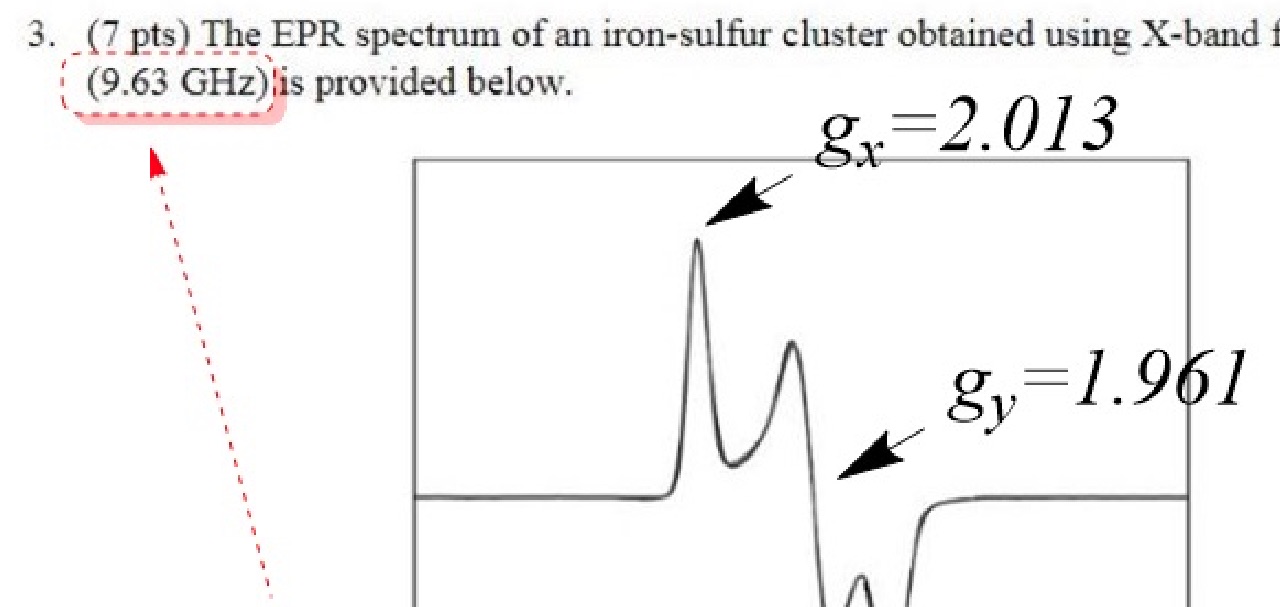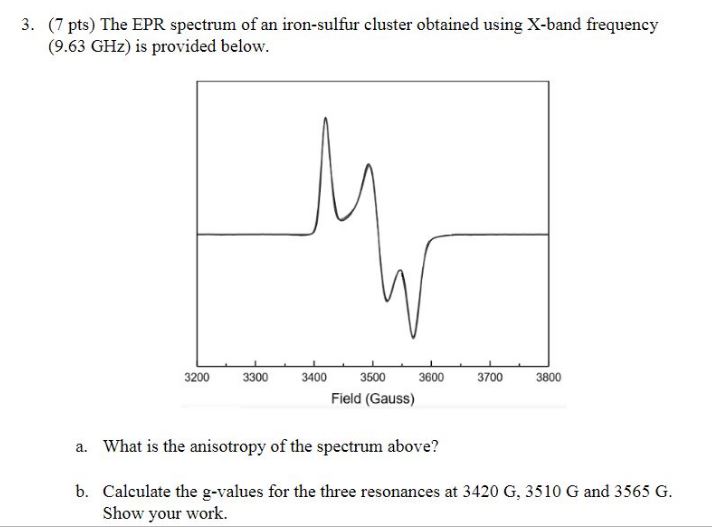 3. (7 pts) The EPR spectrum of an iron-sulfur cluster obtained usin...