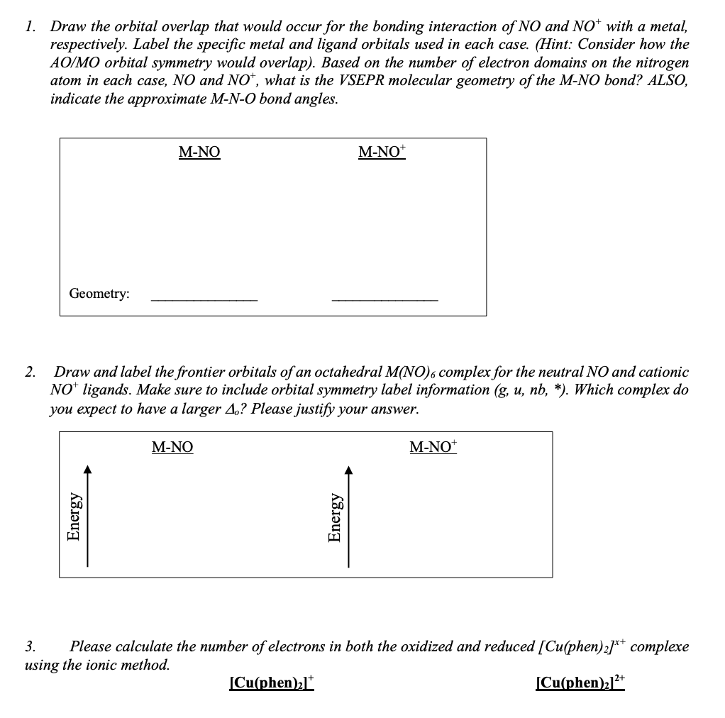 1. Draw the orbital overlap that would occur for the bonding intera...