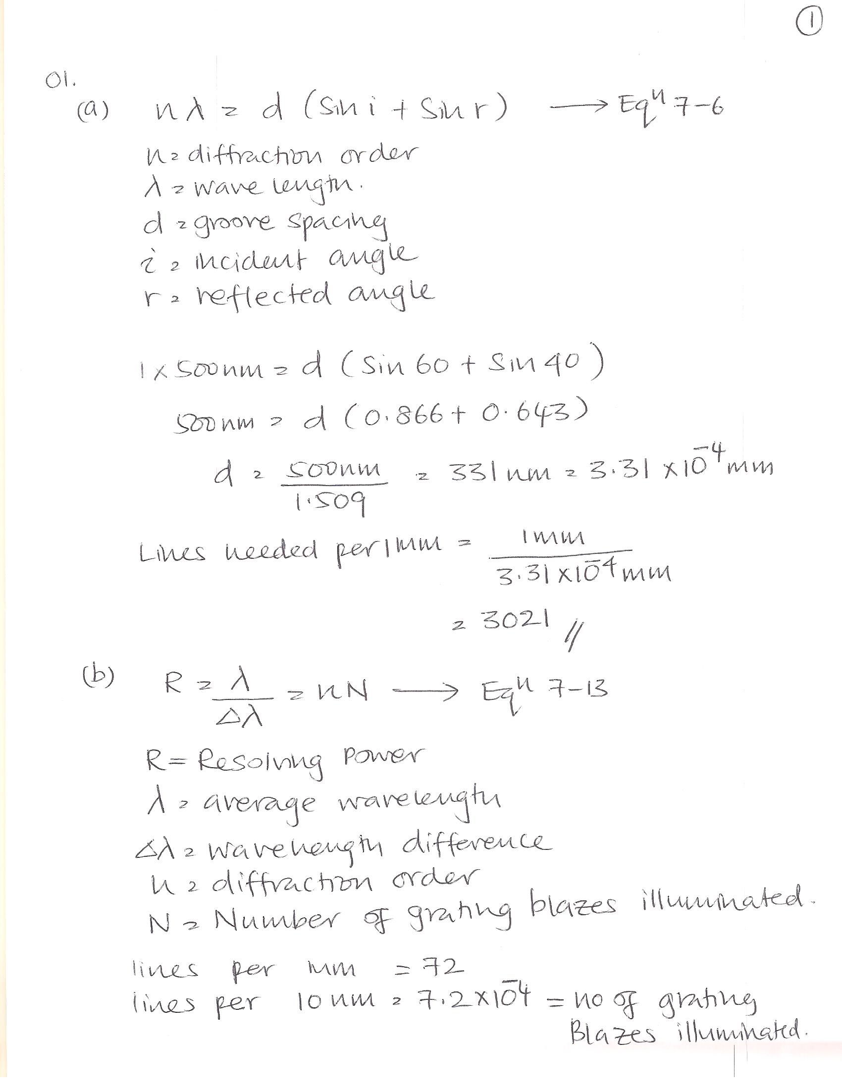 Problems 1. (10 pts) a) How many lines per millimetre would be re...