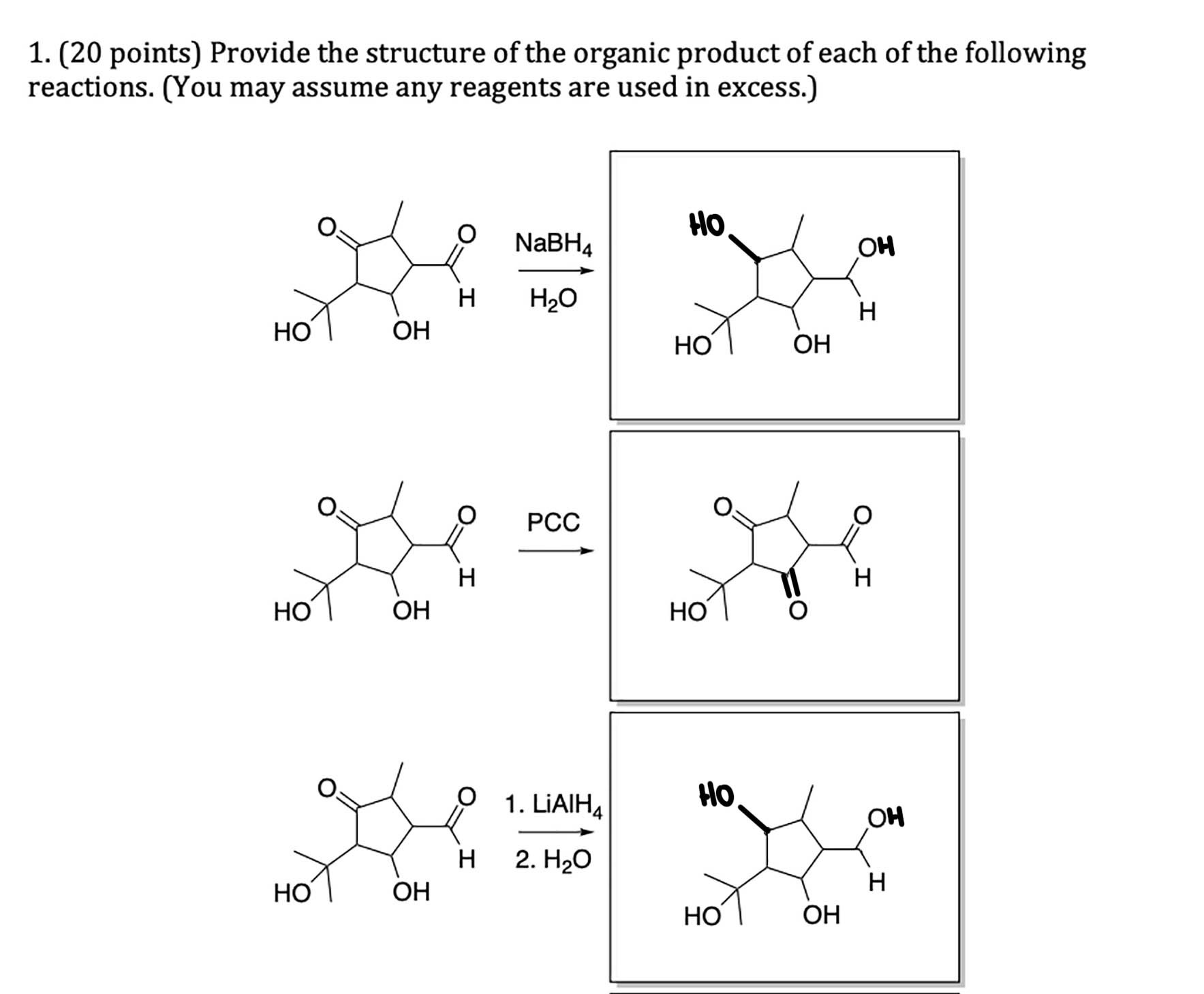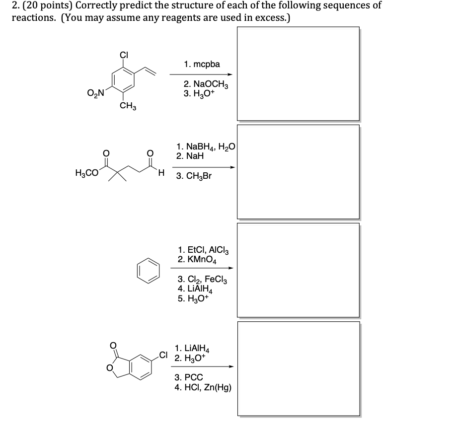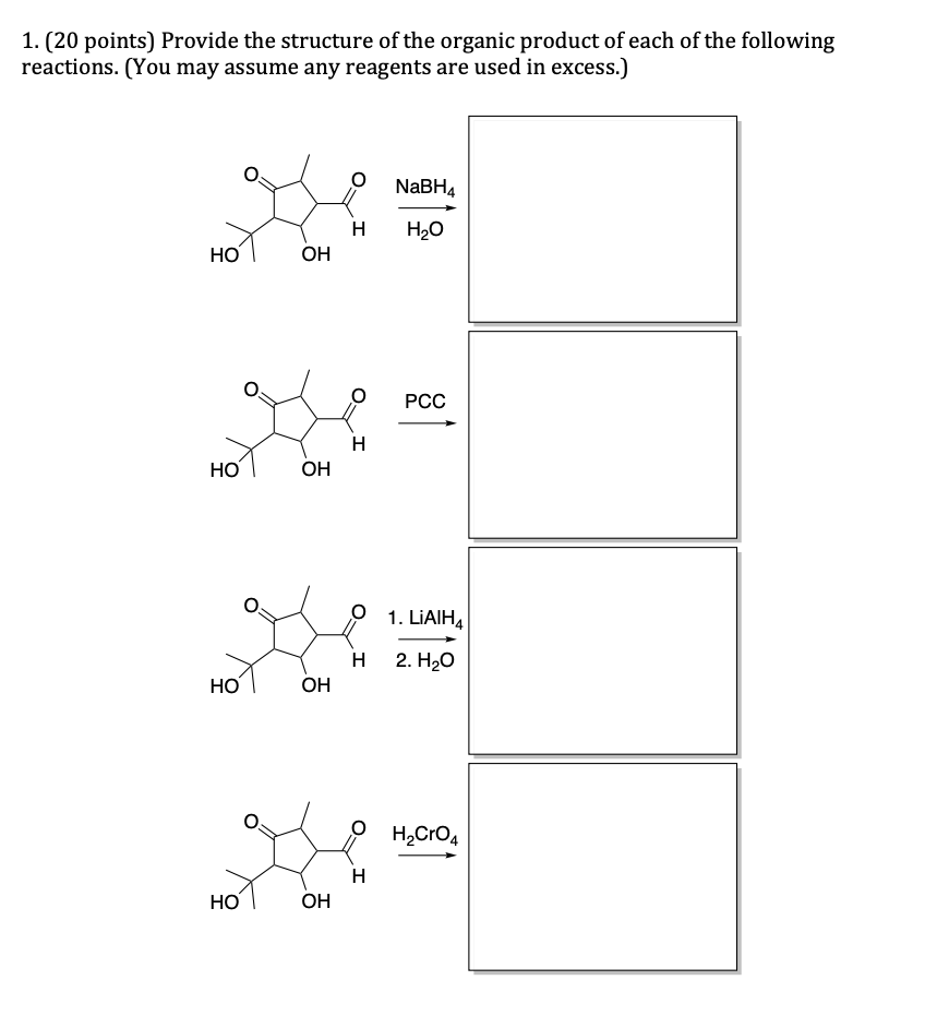 1. (20 points) Provide the structure of the organic product of each...