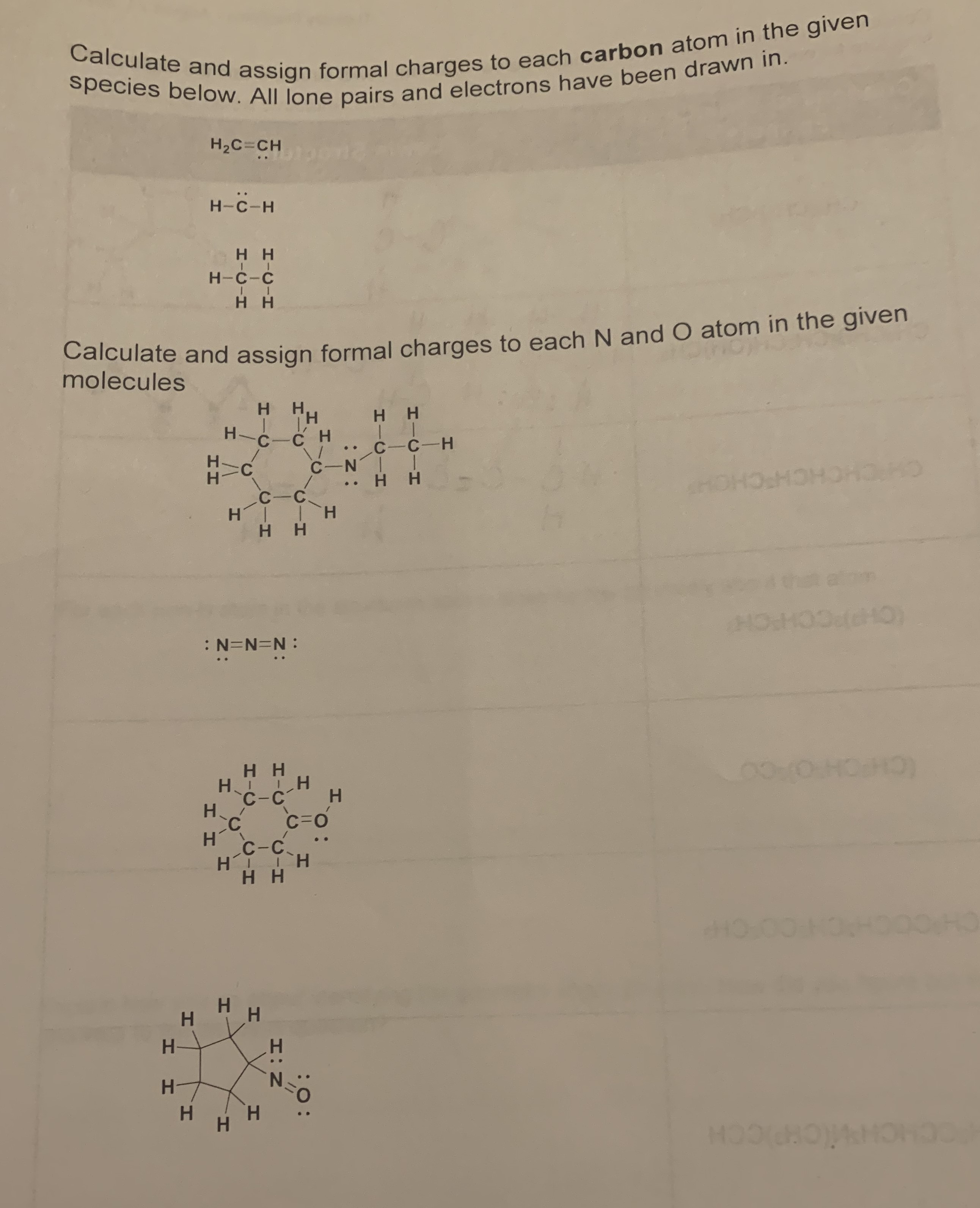 Calculate and charges to each carbon atom drawn in in. the given s...