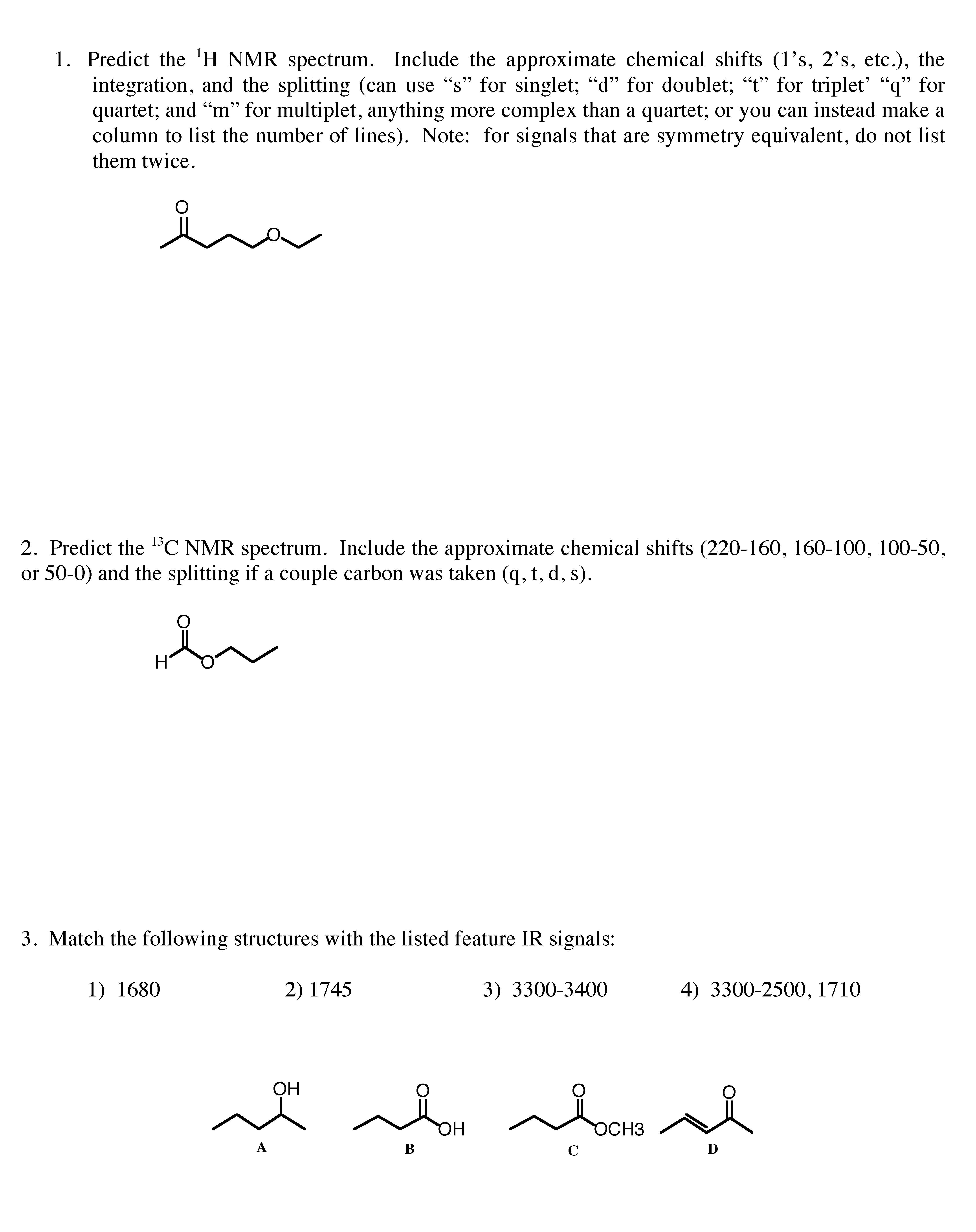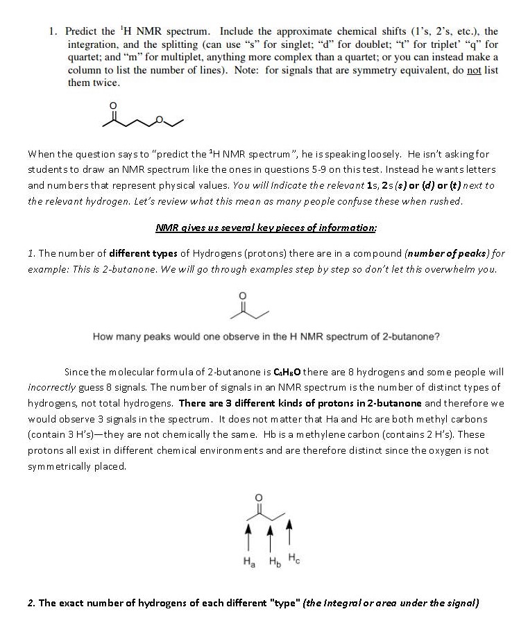 1. Predict the 1 H NMR spectrum. Include the approximate chemical ...