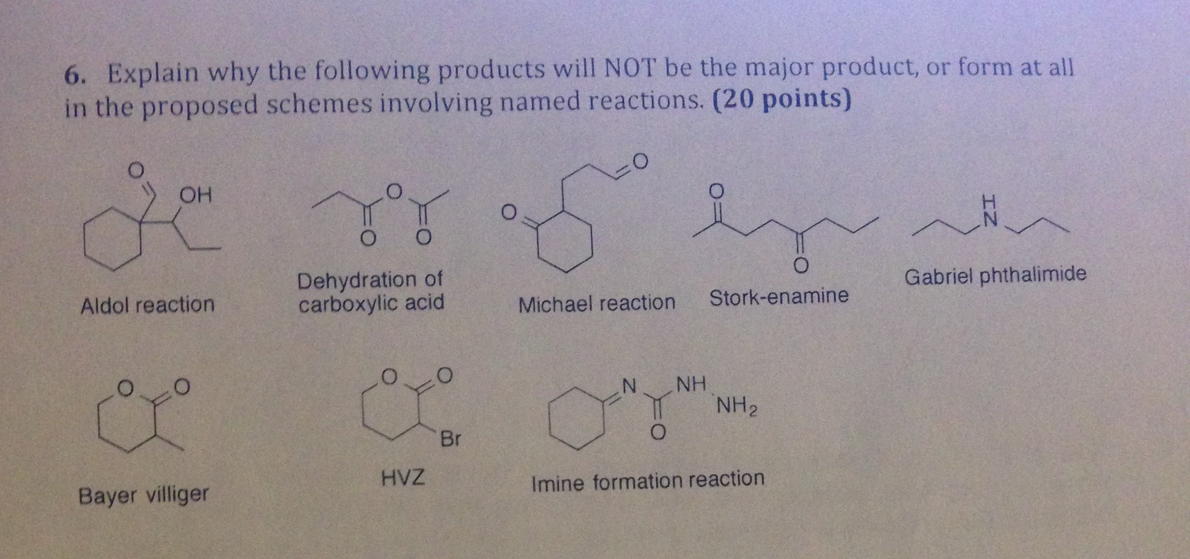 6. Explain why the following products will NOT be the major product...