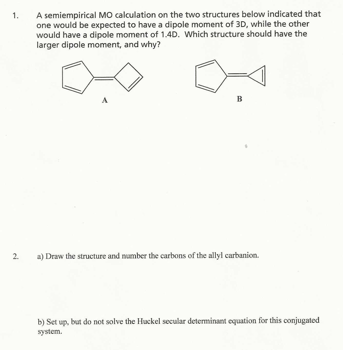 1. A semiempirical MO calculation on the two structures below indi...