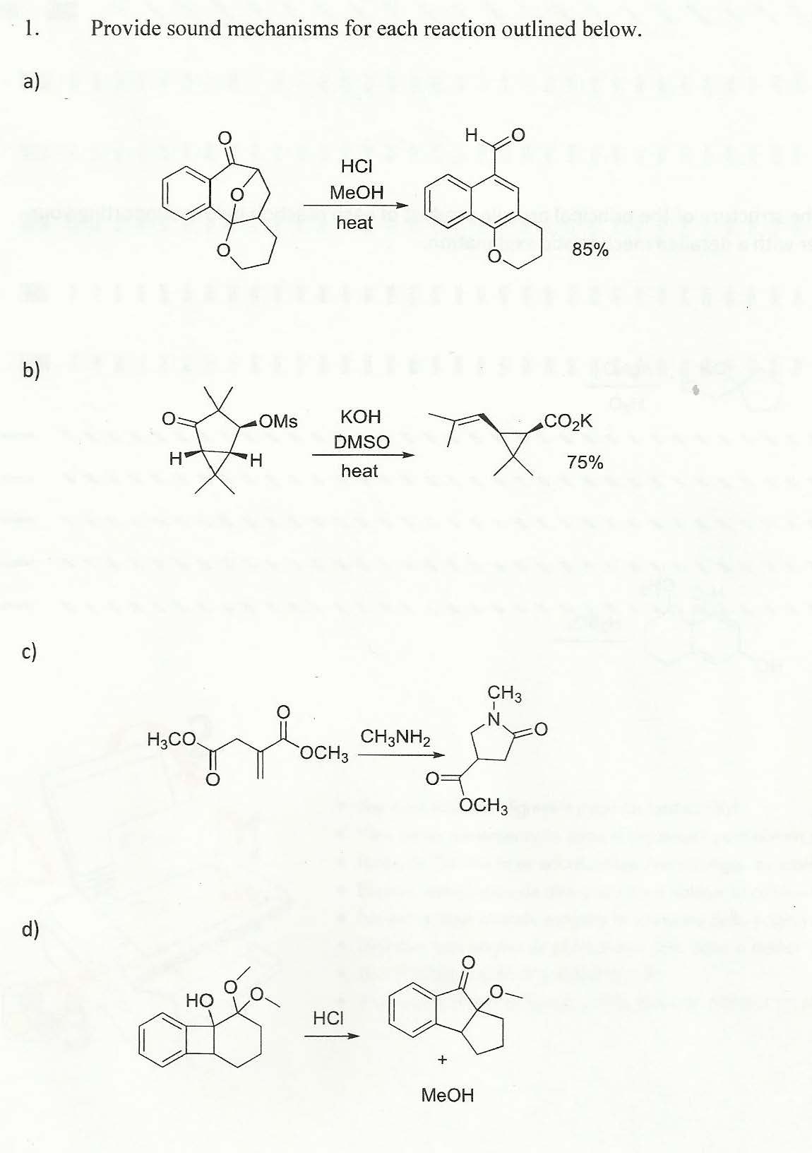 1. Provide sound mechanisms for each reaction outlined below. a)...