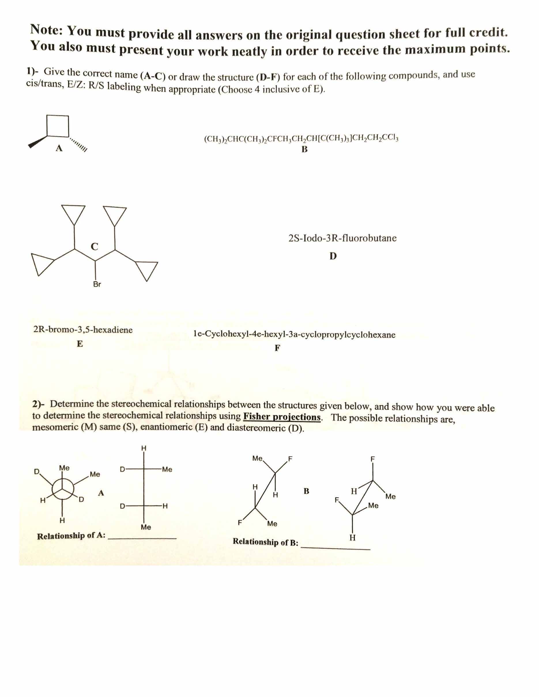 1) Give the correct name (A-C) or draw the structure (D-F) for each...