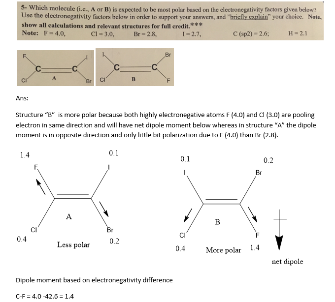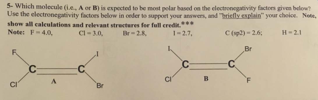5- Which molecule (i.e., A or B) is expected to be most polar based...