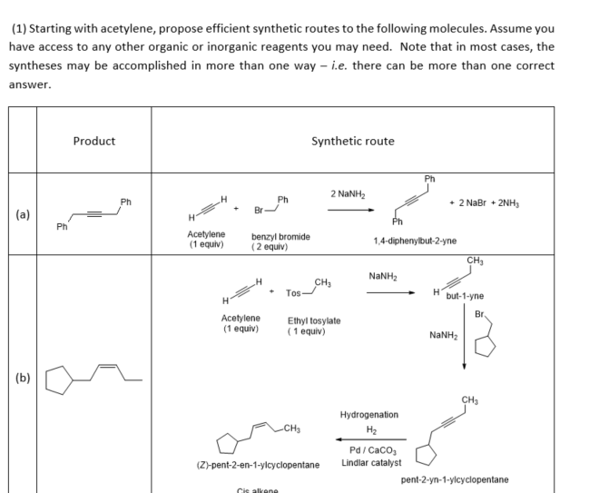 (1) Starting with acetylene, propose efficient synthetic routes to ...