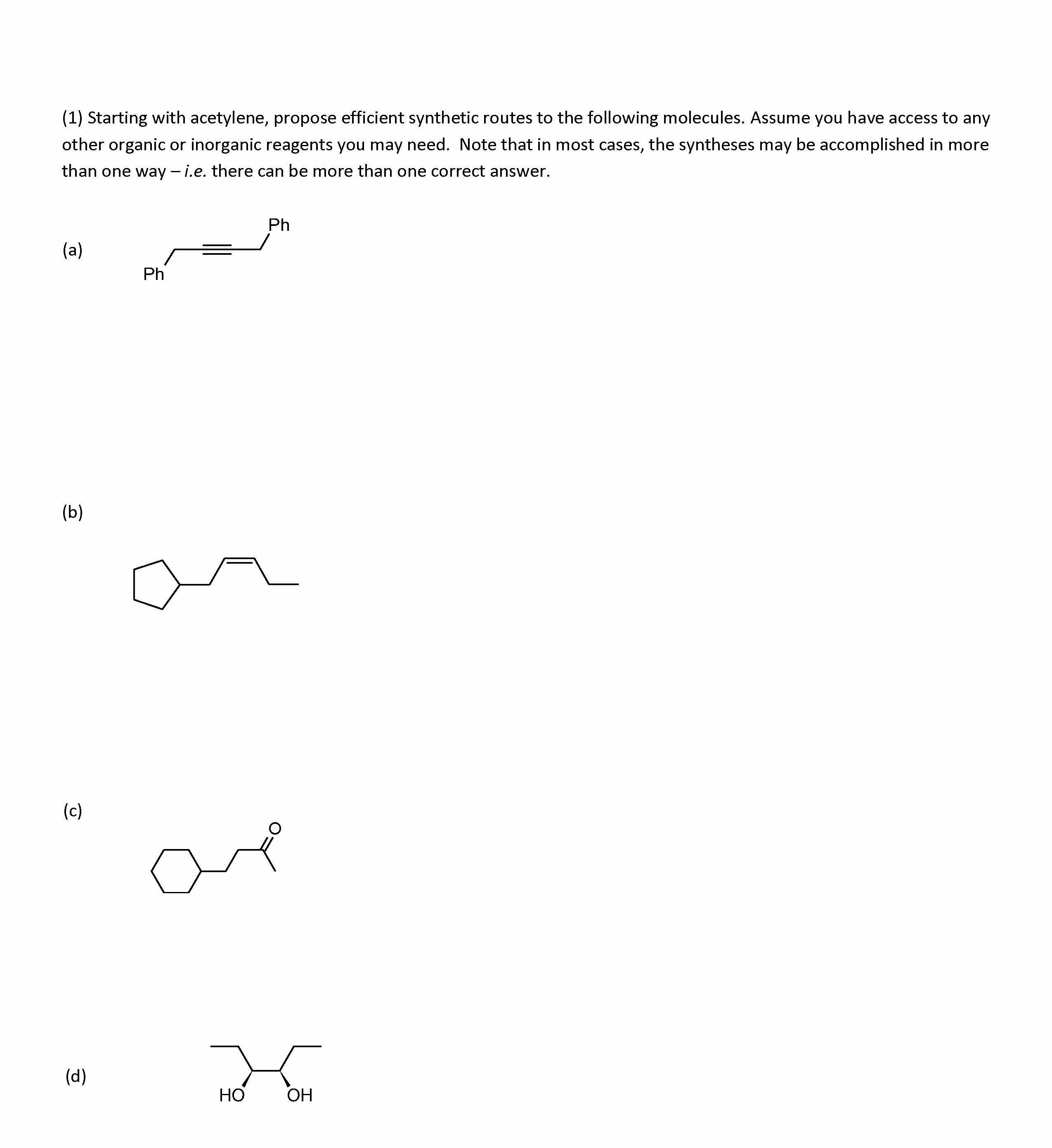 (1) Starting with acetylene, propose efficient synthetic routes to...