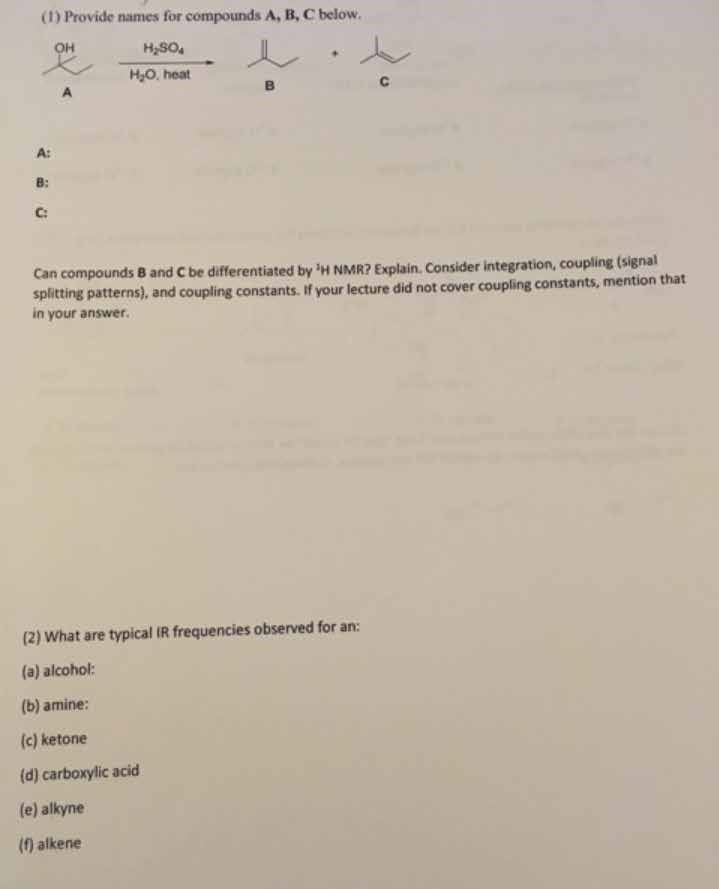 (1) Provide names for compounds A, B, C below. OH H2SO4 H2O, hea...